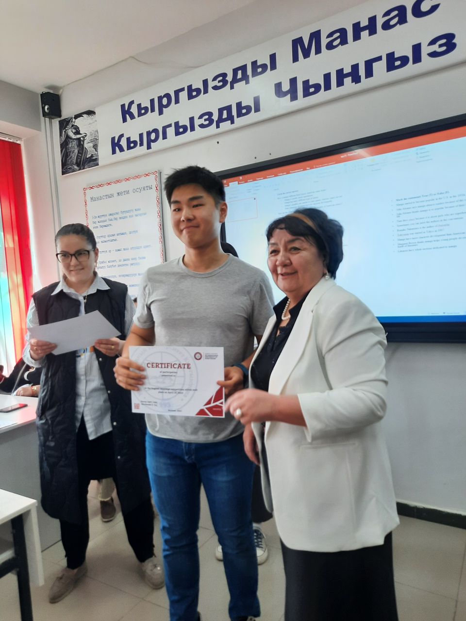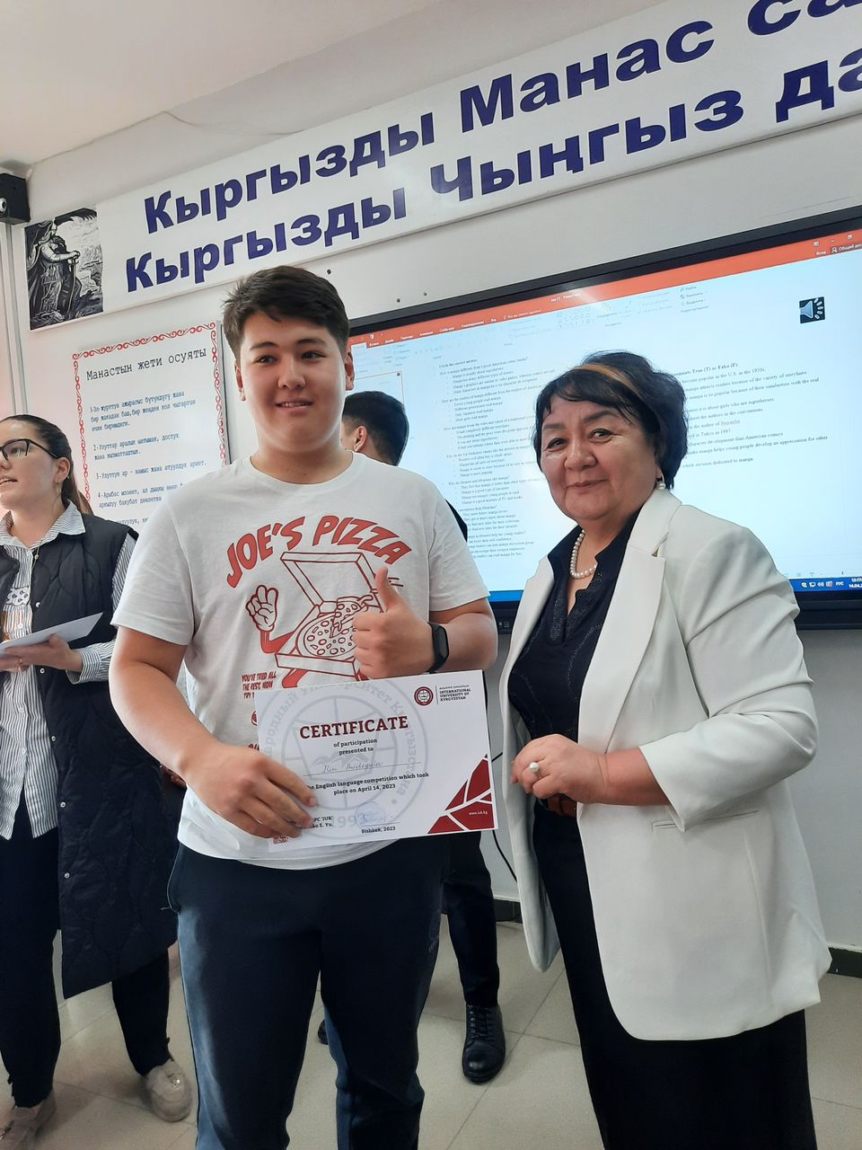We would like to share the wonderful news about the victory of the 11th grade students of the school-gymnasium No. 24 named after Aaly Tokombaev at the English Olympiad, organized by the International University of Kyrgyzstan.