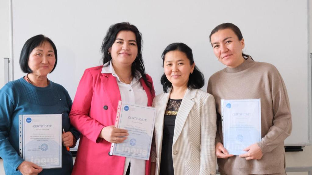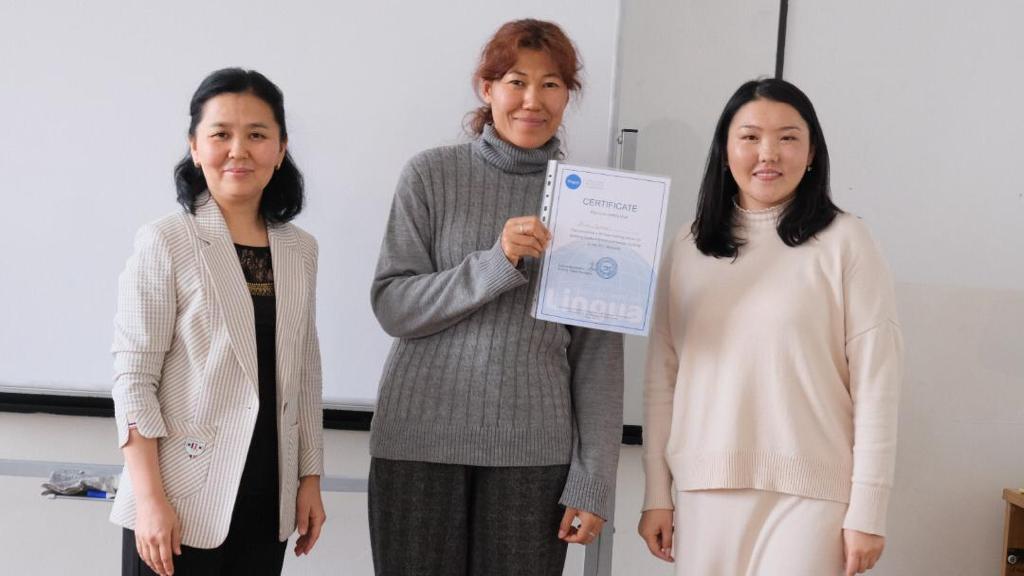 From October 8 to December 3, 2022, the English language teachers of the gymnasium school No. 24 Daminova K.S., Suyunova M.D., Tuuganbayeva A.S., Bakytbekova E.B., took part in advanced training at the English language school “Lingua” in Bishkek. Project “Supporting National Reforms to Improve Education in English”, supported by the US Embassy in the Kyrgyz Republic.