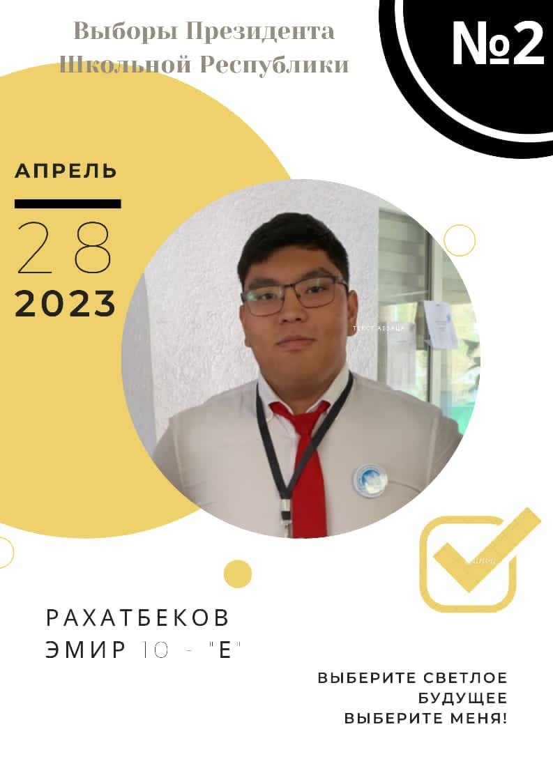 Emir Beknazarovich Rakhatbekov, a candidate for the position of President of the School Student Self-Government, received 349 votes, which is 38.2% of the number of voters who took part in the elections.