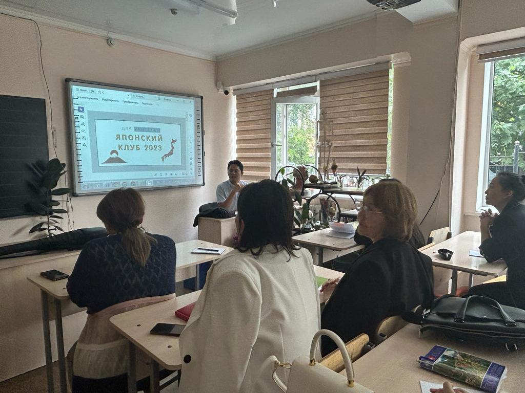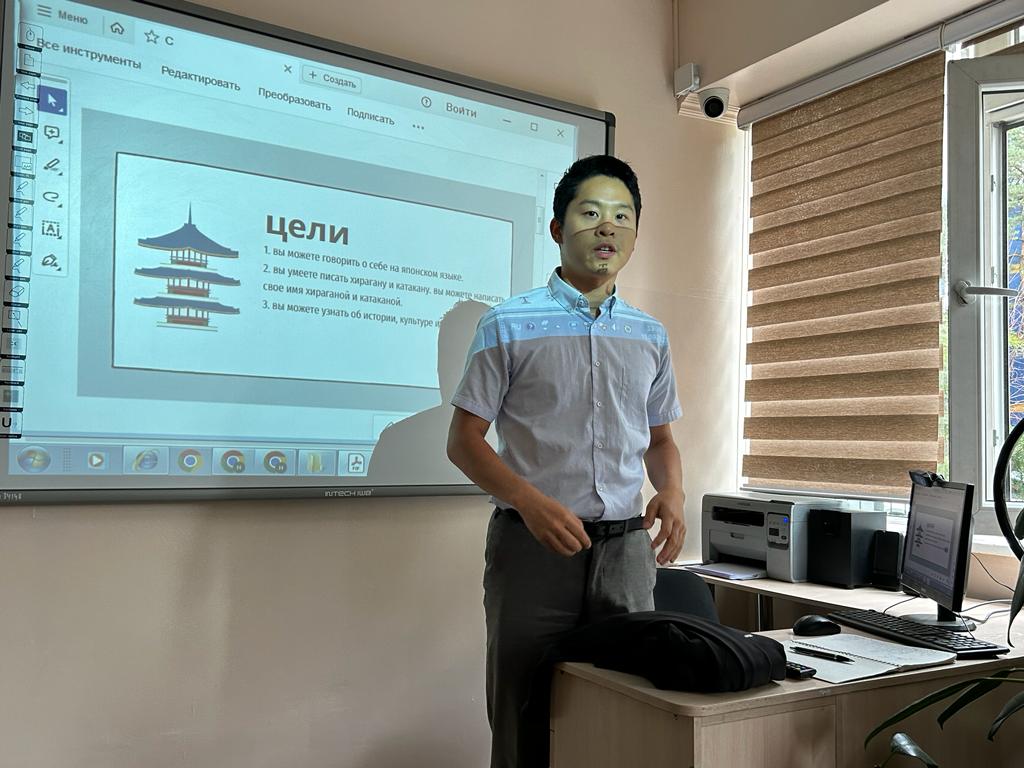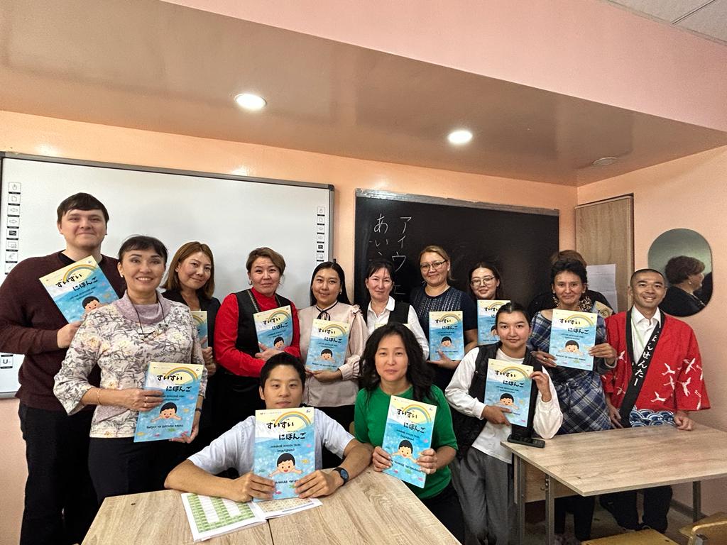 С нового учебного года, учителя школы-гимназии №24 взялись за изучение начинающего курса японского языка. Вместе с опытными волонтёрами Агентства международного сотрудничества Японии (JICA) учителем английского языка, Каваи Такая и учителем математики Асаба Ясутака, наши педагоги открыли для себя мир Японии через изучение её удивительного языка. В рамках обучения были предоставлены яркие учебные материалы Агентством международного сотрудничества Японии (JICA).