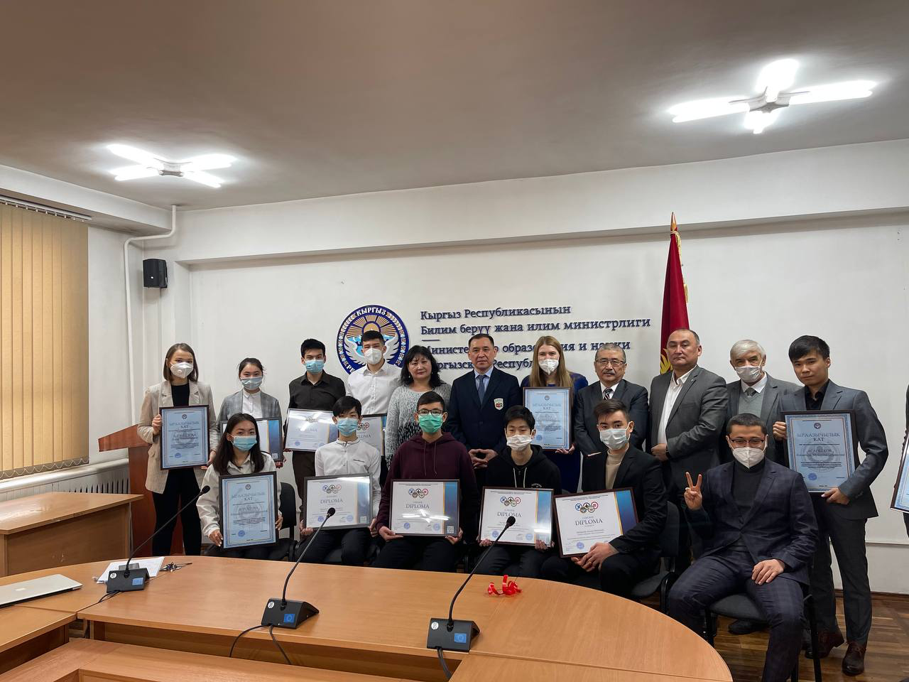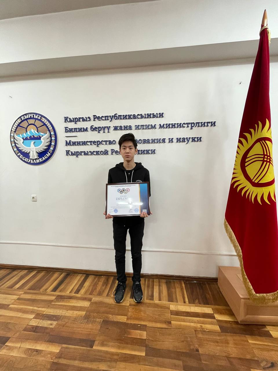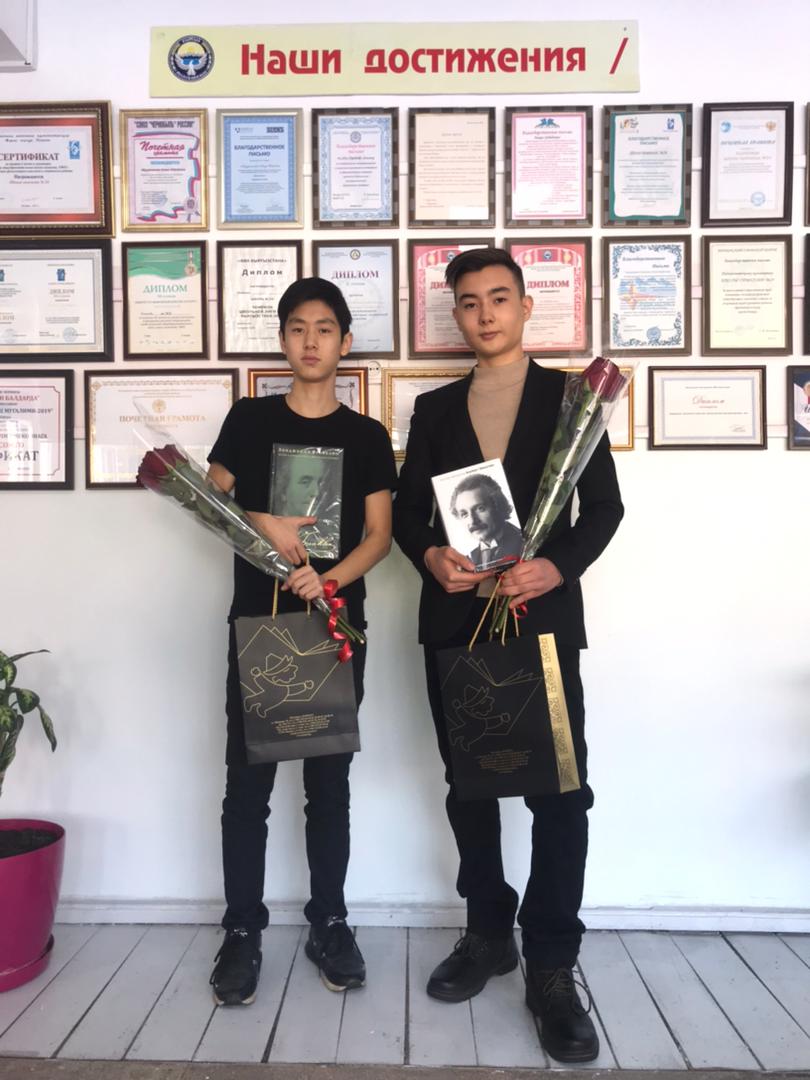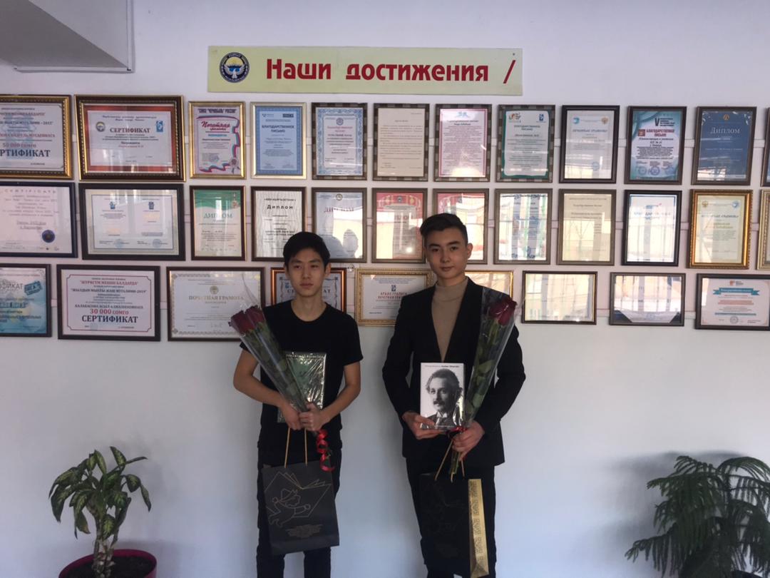 15 января в Министерстве образования и науки Кыргызской Республики прошло торжественное награждение победителей заключительного этапа Республиканской олимпиады по математике. Олимпиада проводилась в стенах Кыргызско-Шведской Математической Школы (KSMS), при поддержке Министерства Образования. Финалистами заключительного тура стали 10 учеников, которые показали лучшие результаты из числа общего беспрецедентного количества — 9009 участников первого тура РОМ. Среди них два ученика из нашей школы! Пак Александр и Алымкулов Аман из 10-А класса. Ребят поздравил министр – Бейшеналиев Алмазбек Бейшеналиевич и члены комиссии Республиканской олимпиады по математике. Они вручили памятные подарки, отметили высокий уровень знаний финалистов, пожелали дальнейших успехов. Также победители получили право бесплатного обучения в Математическом клубе KSMS и попали в команду Кыргызской Республики в Международной Жаутыковской Олимпиаде.