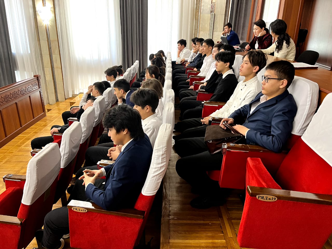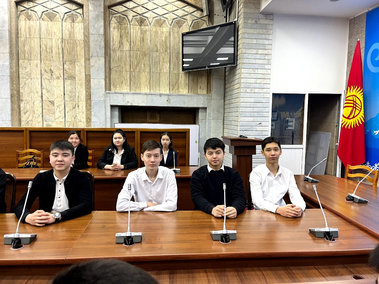 2 февраля 2023- го года учащиеся 9 «Б» класса школы- гимназии 24 им.Аалы Токомбаева посетили здание Жогорку Кенеша Кыргызской Республики. В кулуарах парламента они встретились с действующими депутатами нашей страны, присутствовали на заседании. Состоялась очень интересная и содержательная беседа с депутатом Жогорку Кенеша Эльвирой Жыргалбековной Сурабалдиевой. Во время открытого диалога,наряду со студентами Академии Государственного Управления при Президенте КР им.