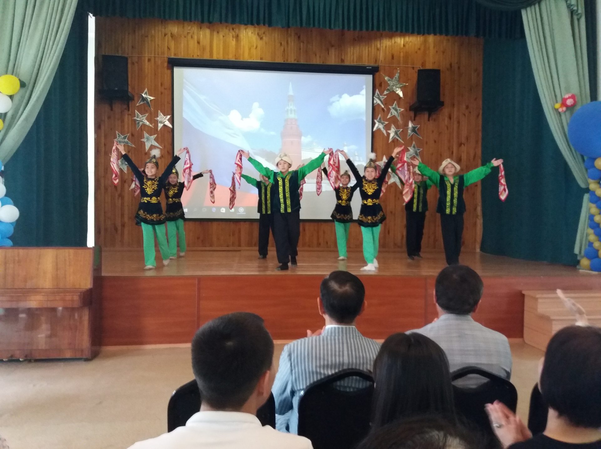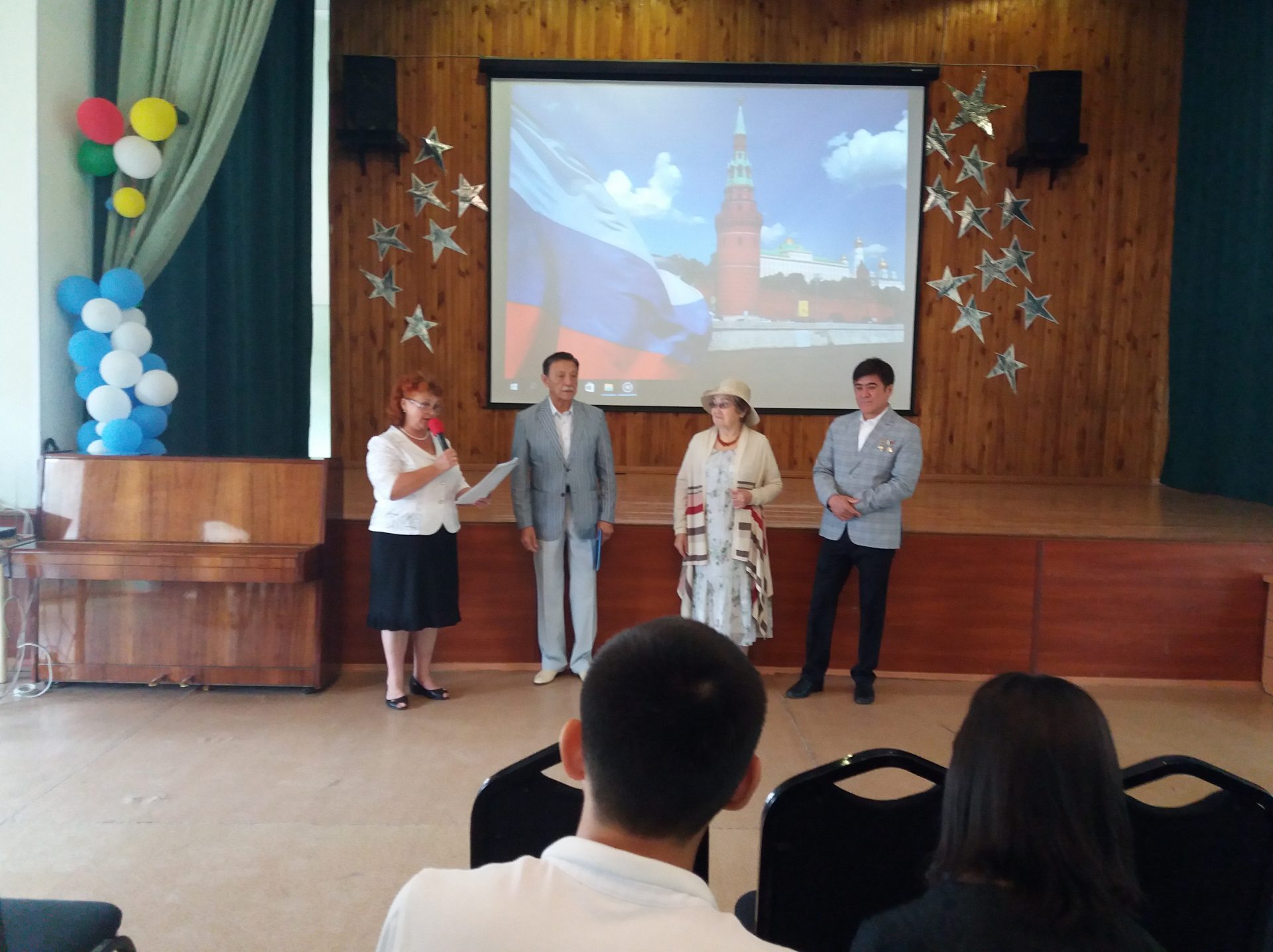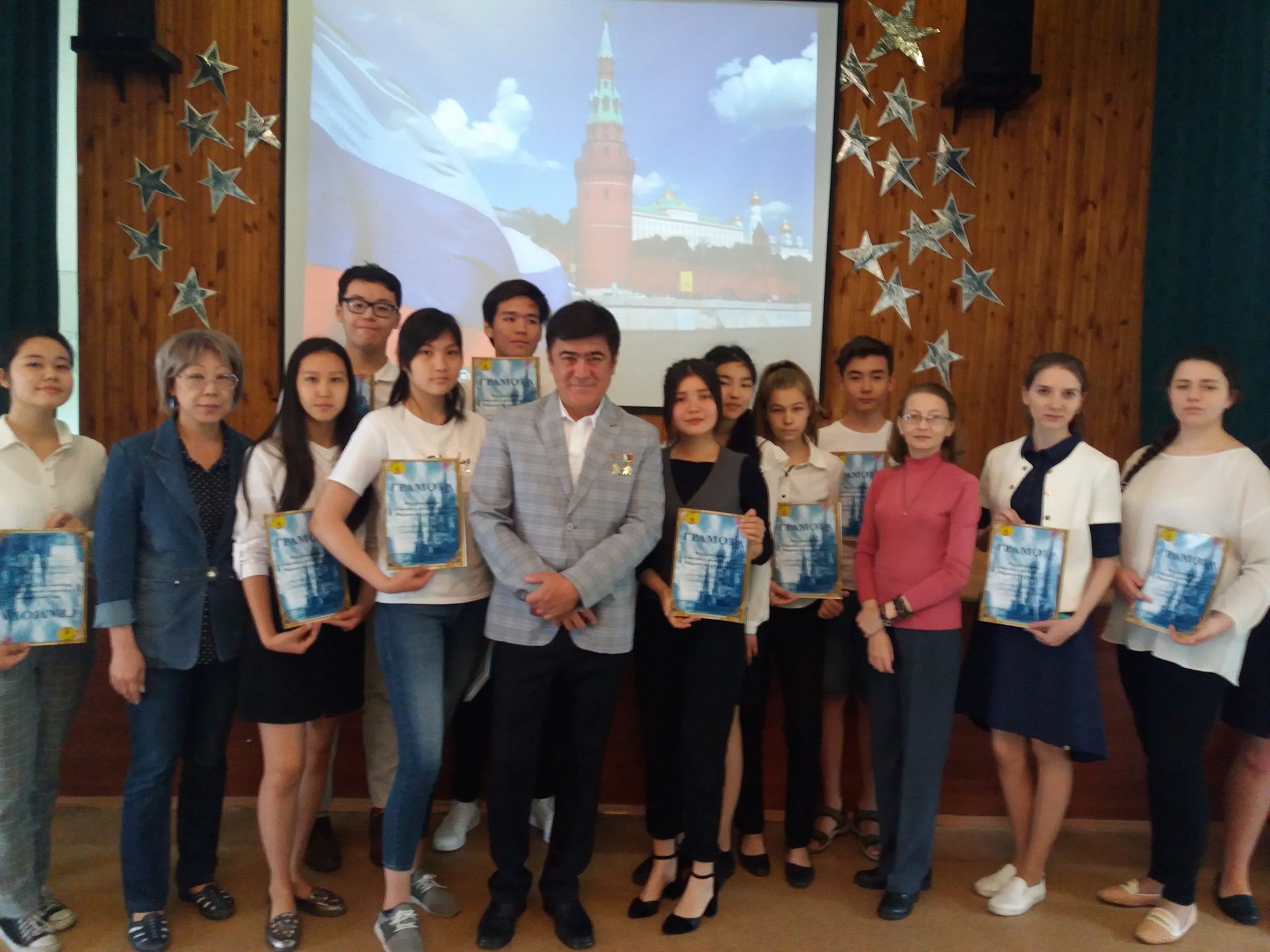 Сегодня 10 июня состоялся ежегодный праздник, посвященный Дню России. Целью мероприятия было отметить лучших школьников Кыргызстана, которые ежегодно принимают участие в российских конкурсах сочинений, конкурсах чтецов, рисунков. Эта встреча имела особое значение для каждого присутствующего, потому что у себя на Родине, в нашей школе встречали 372 космонавта мира, 88 космонавта СССР и России и 1 космонавта Кыргызстана Шарипов Салижан Шакирович, а также почетных гостей Газизов Хабибула Закировича представителя фонда «Наследники Победы», Сартбаеву Кайыргуль народная артистка СССР, профессор КГНК, кавалер ордена «Манас» 3 и 2 степени. Школьники и учителя получили грамоты и ценные подарки из рук почетных гостей, насладились чтением стихотворений призеров конкурсов и получили заряд хорошего настроения от выступления школьного танцевального ансамбля «Ак маанай», под руководством Ташматовой Нурийлы Калысовны.