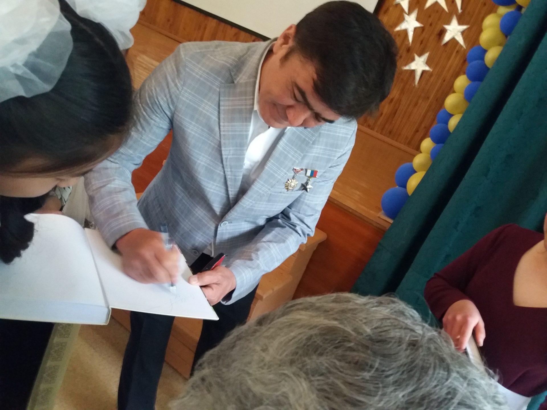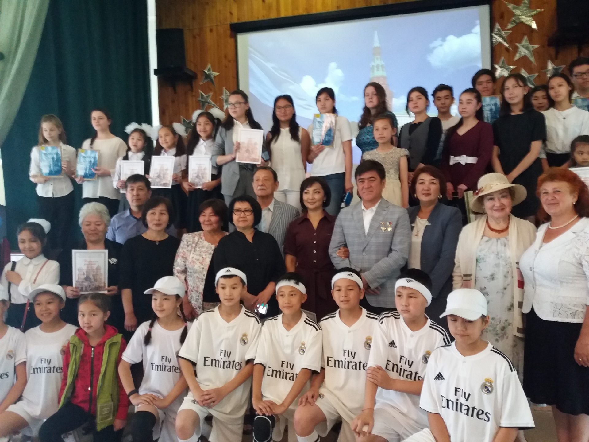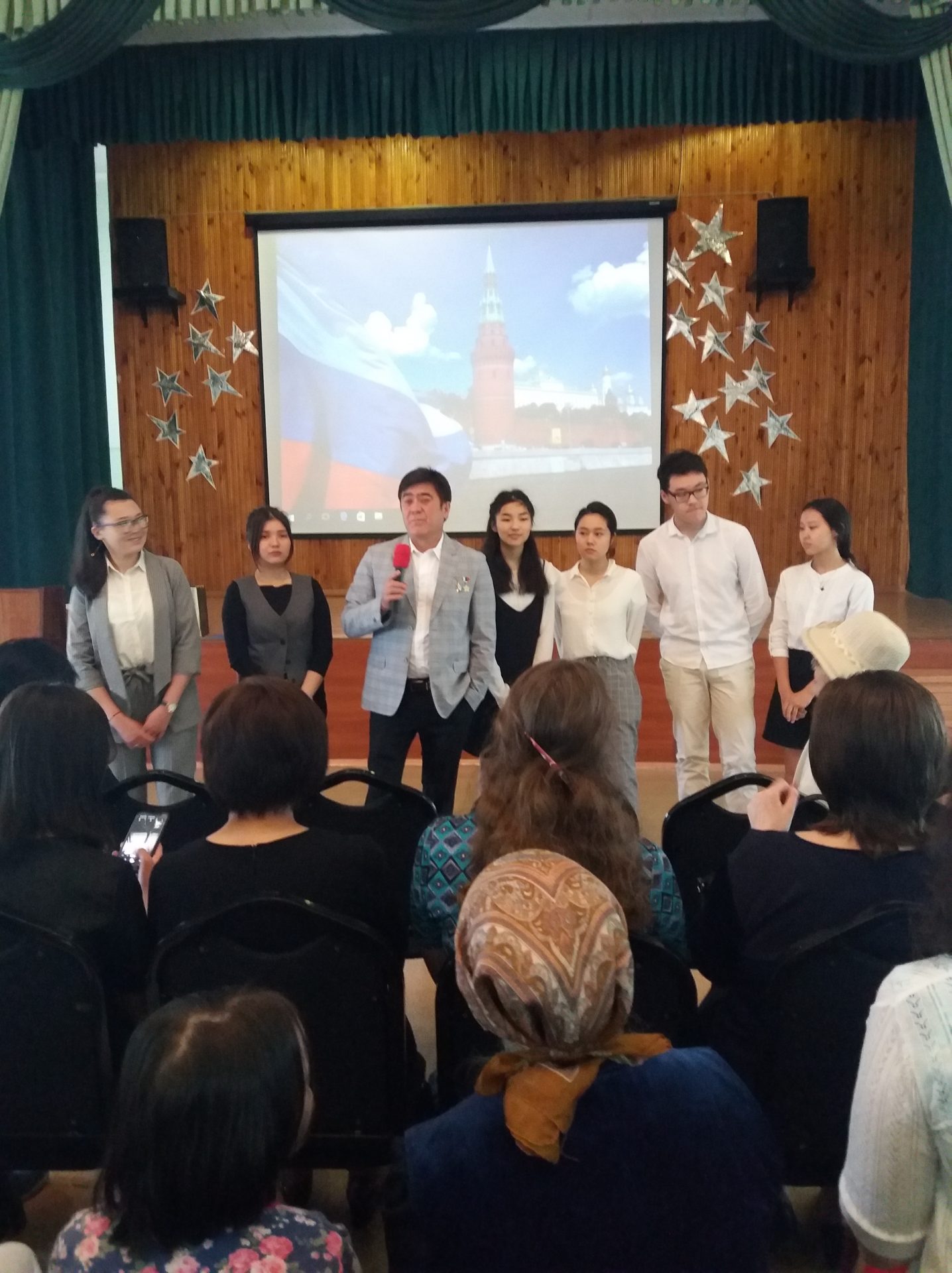 Сегодня 10 июня состоялся ежегодный праздник, посвященный Дню России. Целью мероприятия было отметить лучших школьников Кыргызстана, которые ежегодно принимают участие в российских конкурсах сочинений, конкурсах чтецов, рисунков. Эта встреча имела особое значение для каждого присутствующего, потому что у себя на Родине, в нашей школе встречали 372 космонавта мира, 88 космонавта СССР и России и 1 космонавта Кыргызстана Шарипов Салижан Шакирович, а также почетных гостей Газизов Хабибула Закировича представителя фонда «Наследники Победы», Сартбаеву Кайыргуль народная артистка СССР, профессор КГНК, кавалер ордена «Манас» 3 и 2 степени. Школьники и учителя получили грамоты и ценные подарки из рук почетных гостей, насладились чтением стихотворений призеров конкурсов и получили заряд хорошего настроения от выступления школьного танцевального ансамбля «Ак маанай», под руководством Ташматовой Нурийлы Калысовны.