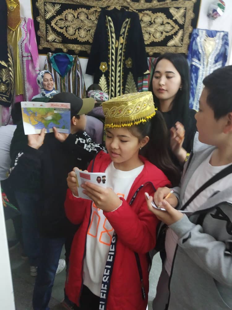 Учащиеся нашей школы, 5-9 классы, получили возможность стать путешественниками и посетить множество стран в один день. Познакомиться с культурой, традициями и интересными фактами из жизни стран, расположенных вдоль Великого Шелкового Пути. Увидеть товары, перевозившиеся по шелковому пути: разновидности шелковых изделий, риса, чая, специй и другие предметы, которыми обменивались страны. Формат выставки интерактивный, ребята принимали участие в мастер- классах, квестах, интерактивных рассказах, играх разных стран. Присутствовали на концерте, где с приветственным словом выступила экс- президент нашей страны Роза Исаковна Отумбаева, услышали игру на японских барабанах, увидели мастеров восточных боевых искусств, продемонстрировавших элементы кунгу-фу, каратэ и айкидо.