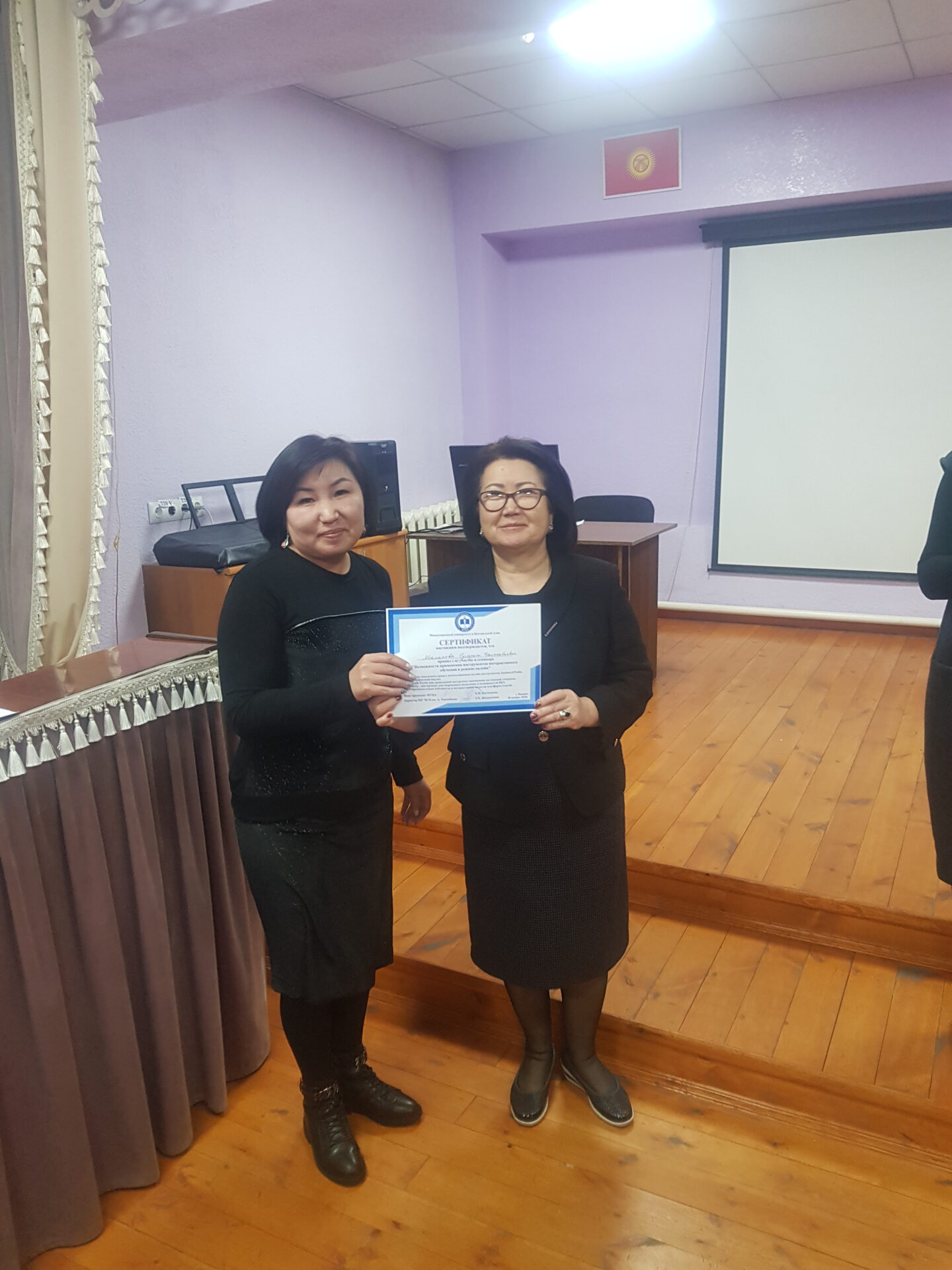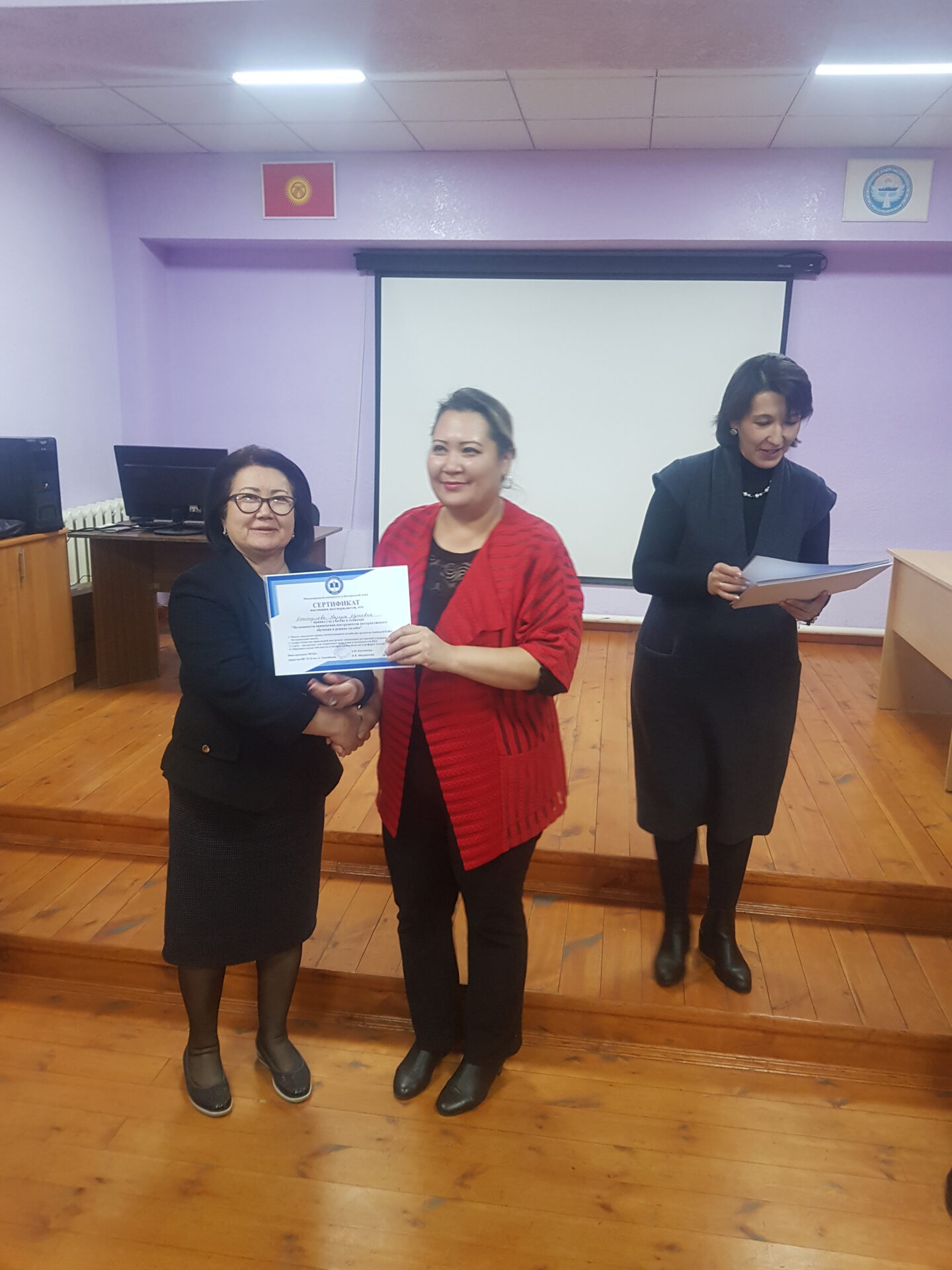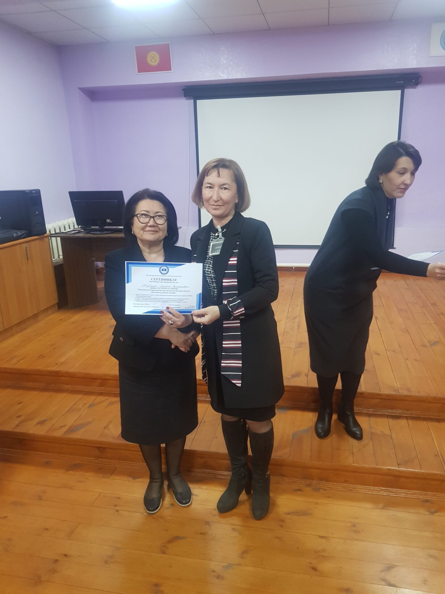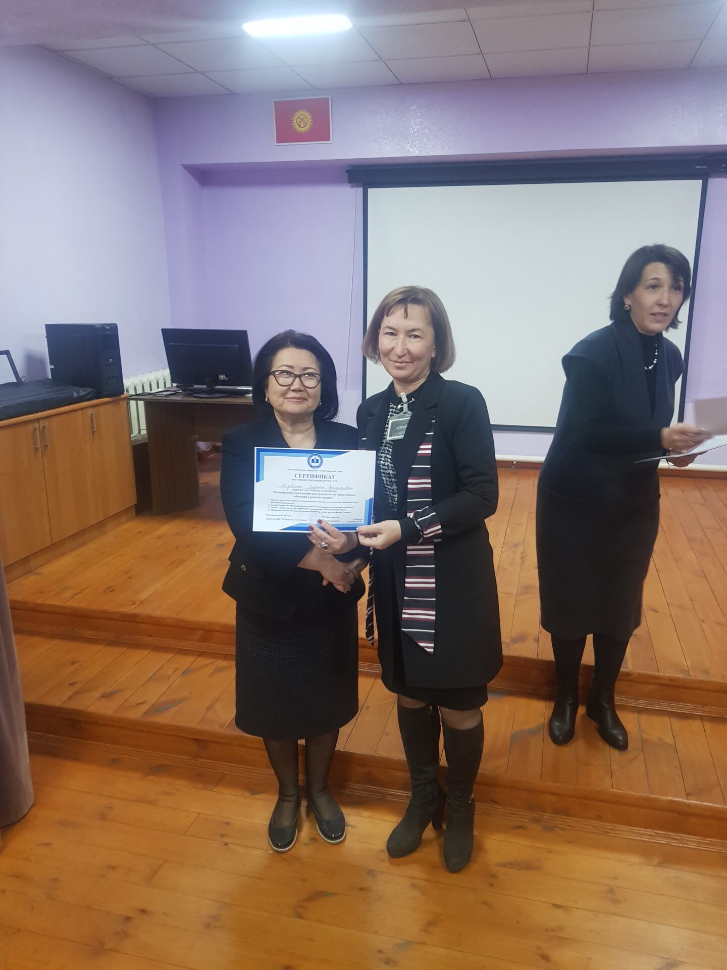 На семинаре состоялся взаимный обмен опытом коллектива школы-гимназии №24 и Международного университета Центральной Азии (МУЦА). Опыт дистанционной работы по ШГ №24 им. А. Токомбаева был подробно освещён завучем по УВР Знаменской Натальей Александровной.
