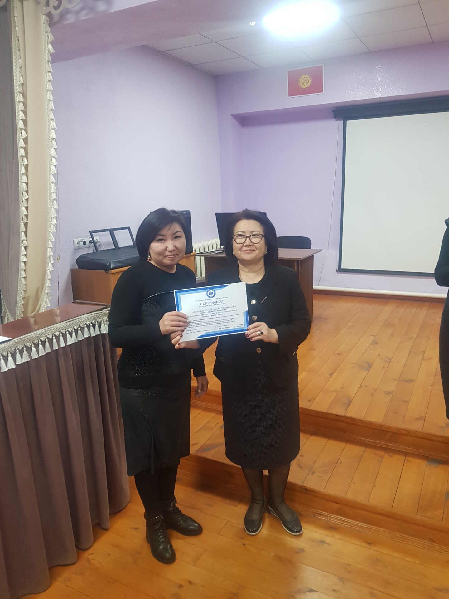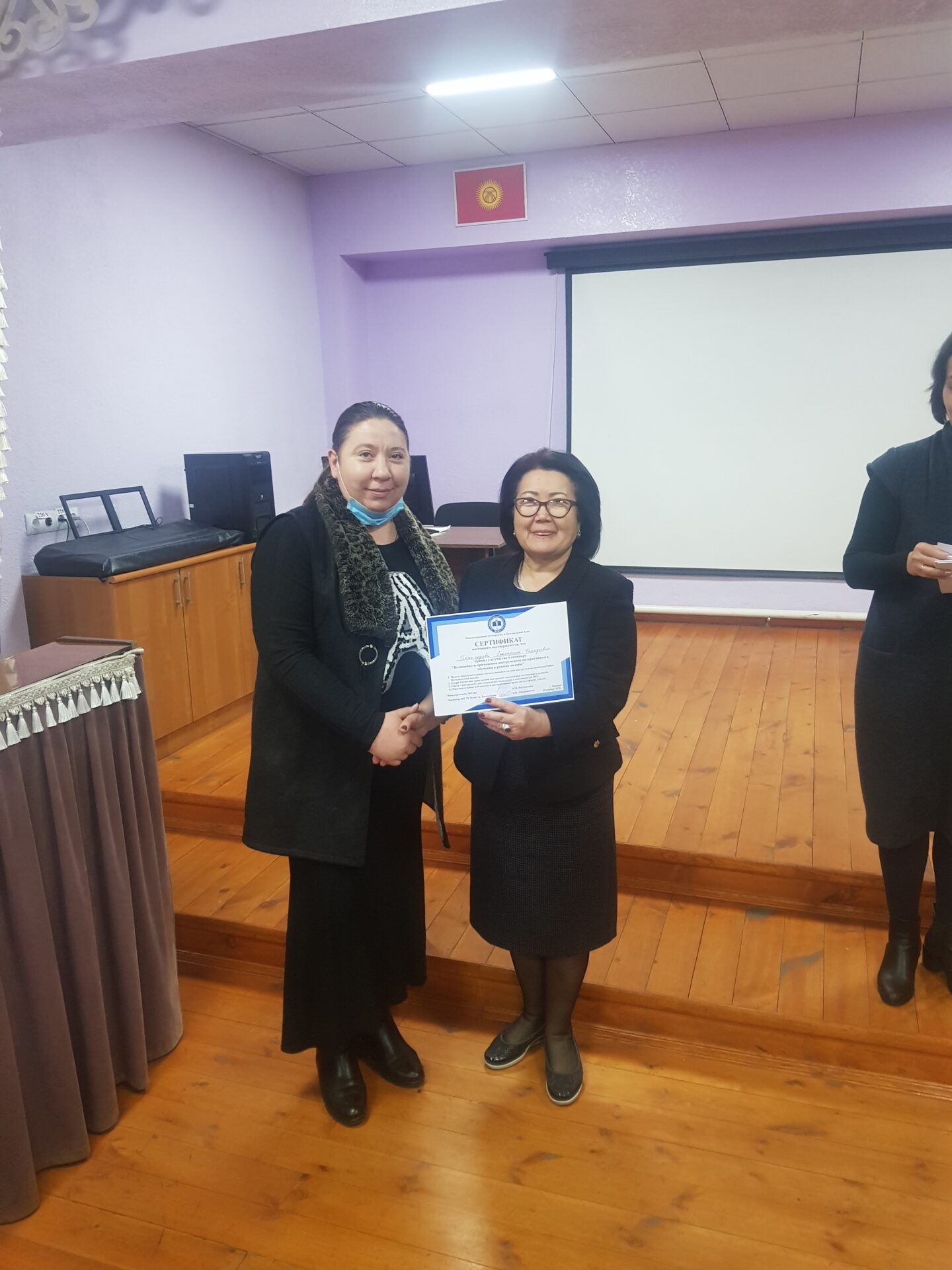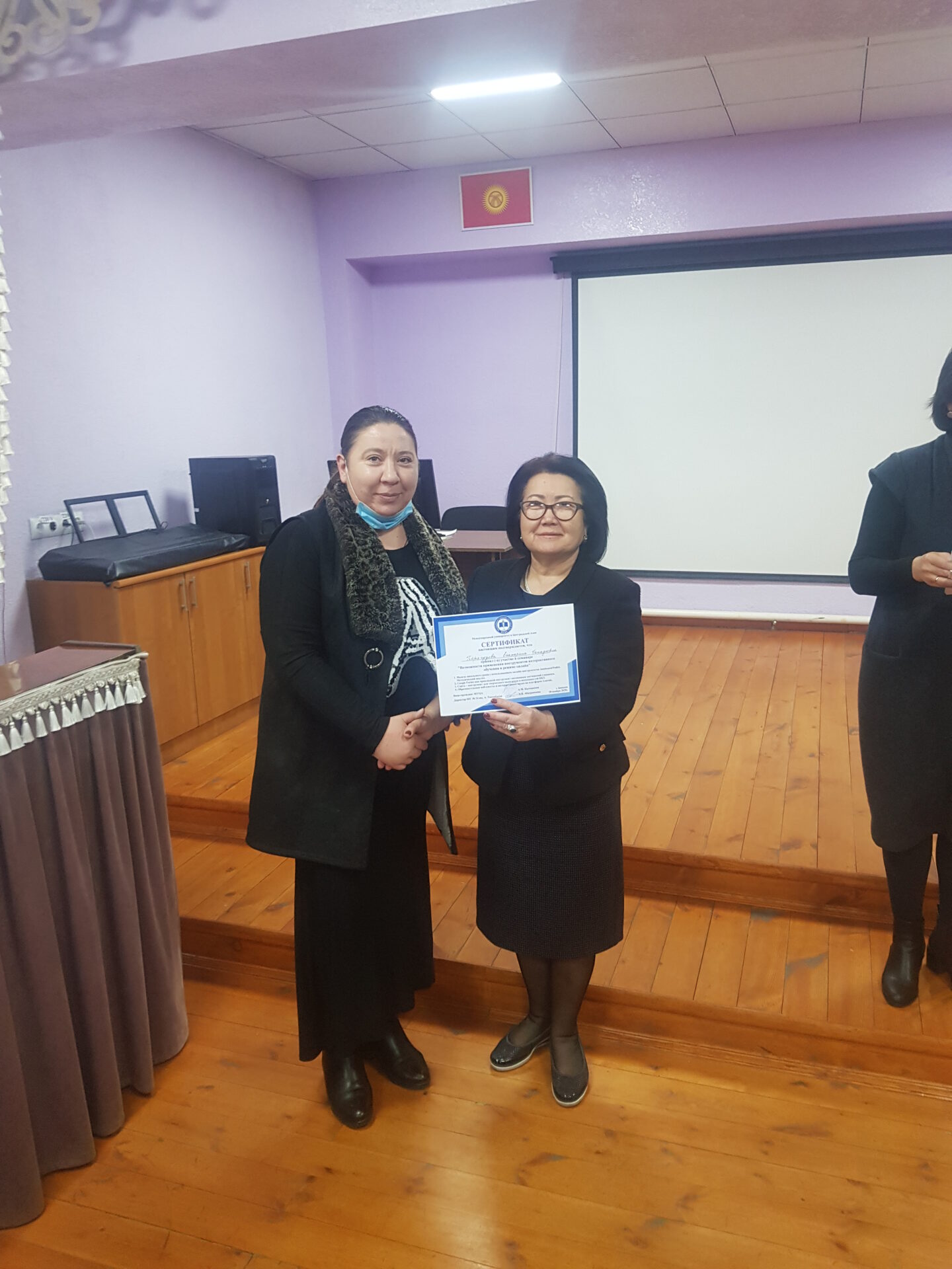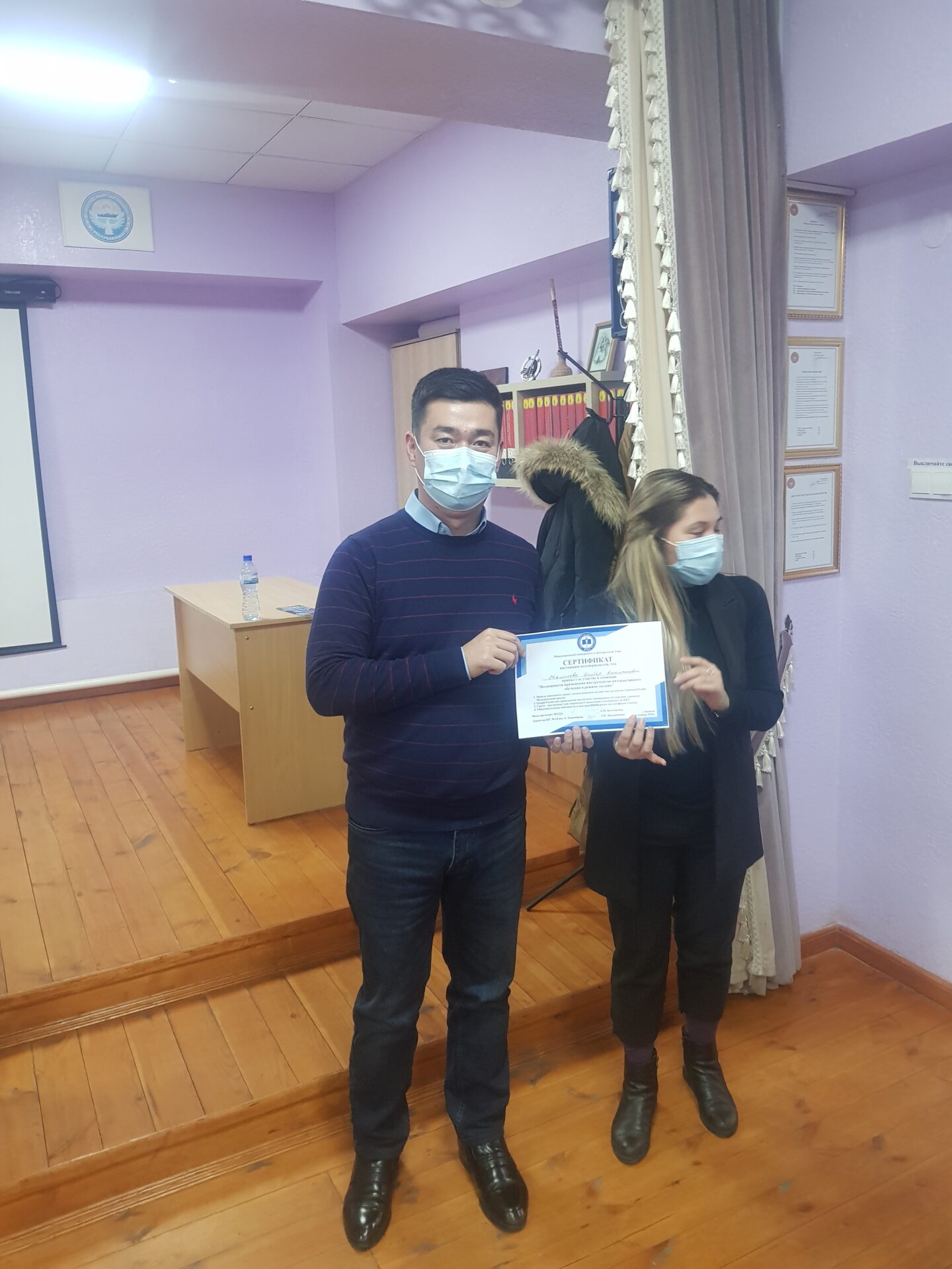 На семинаре состоялся взаимный обмен опытом коллектива школы-гимназии №24 и Международного университета Центральной Азии (МУЦА). Опыт дистанционной работы по ШГ №24 им. А. Токомбаева был подробно освещён завучем по УВР Знаменской Натальей Александровной.