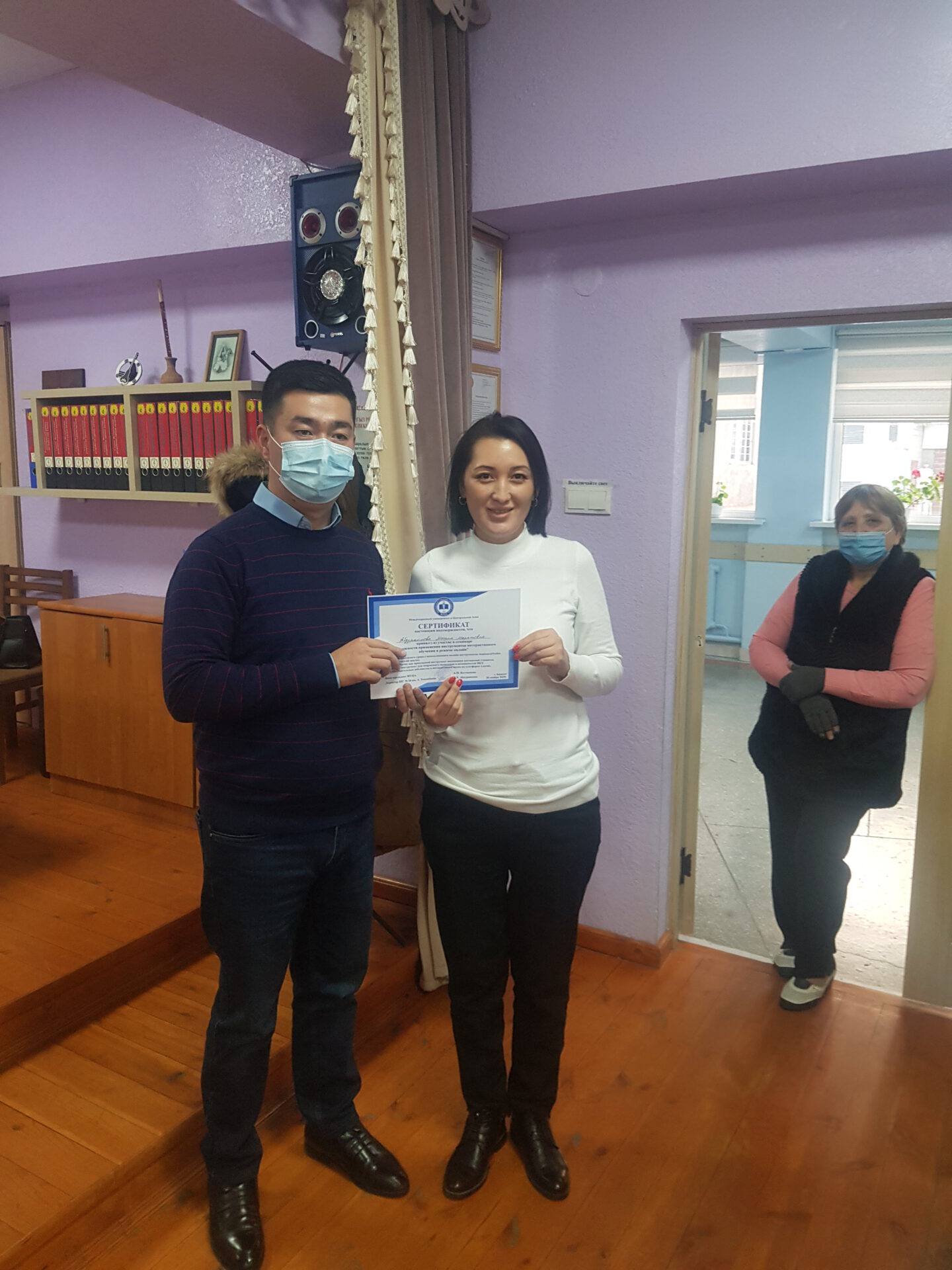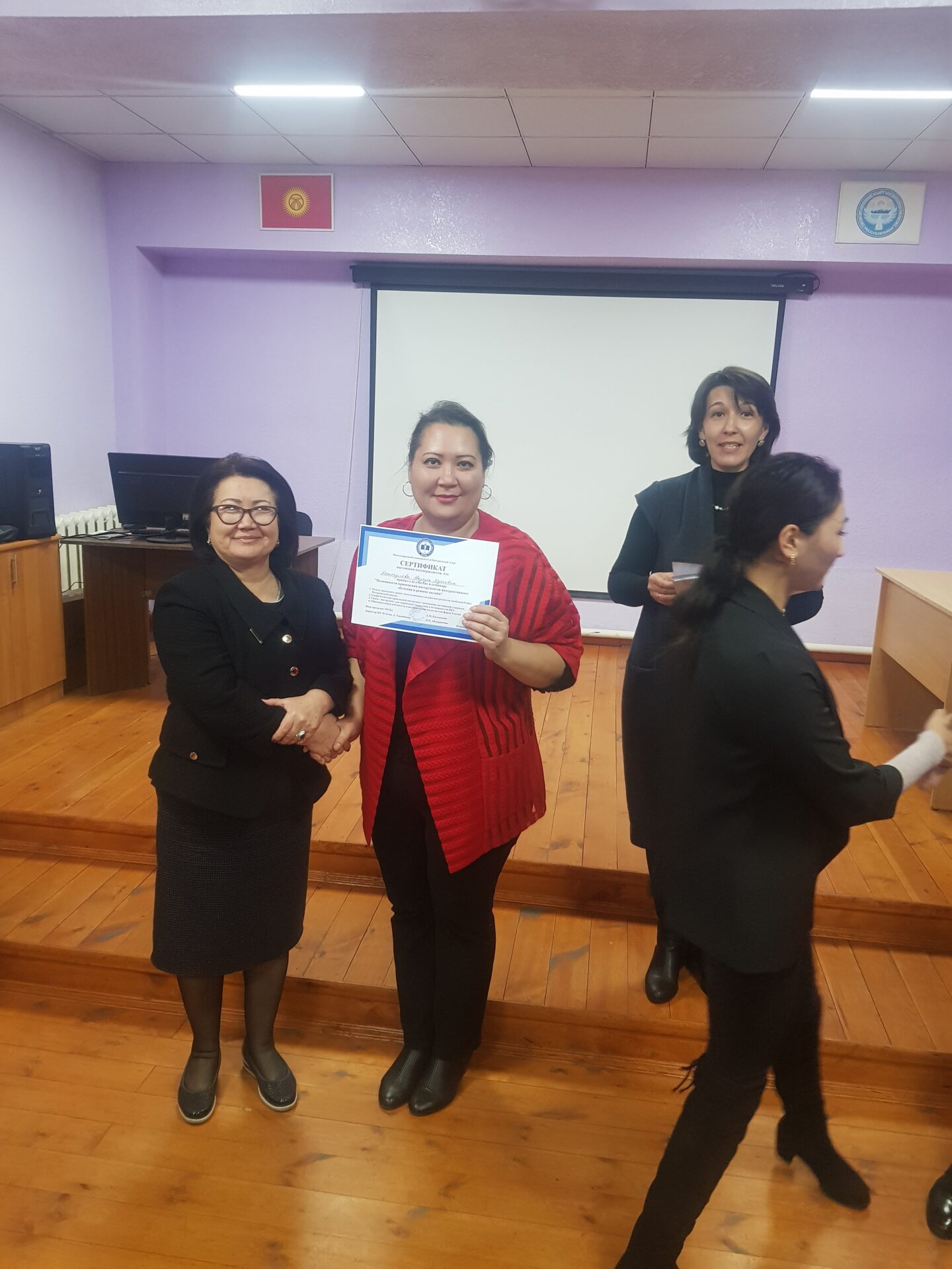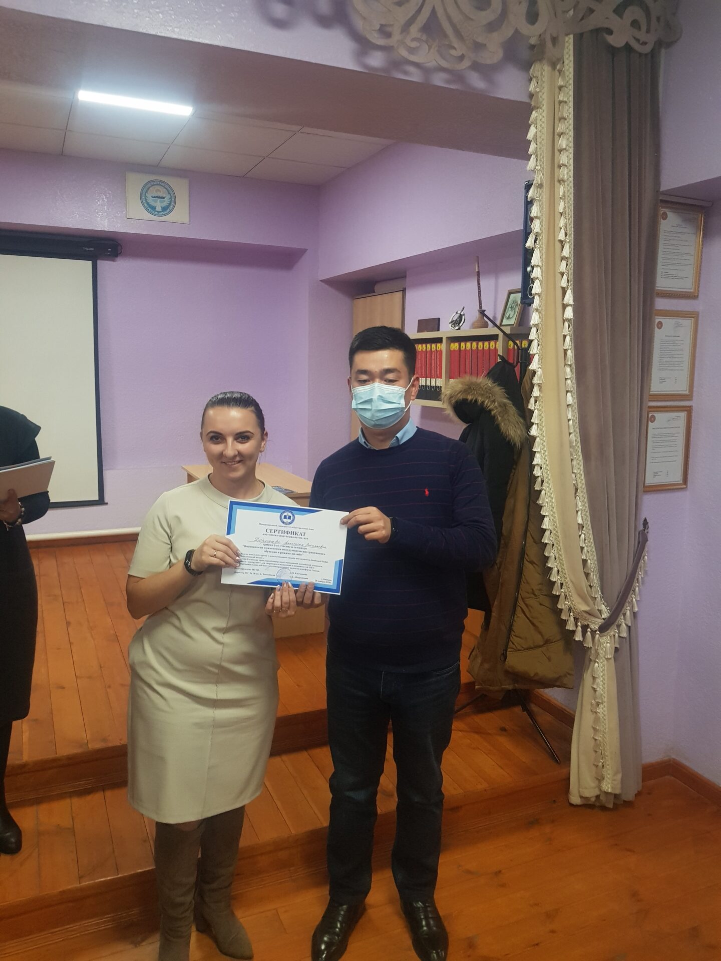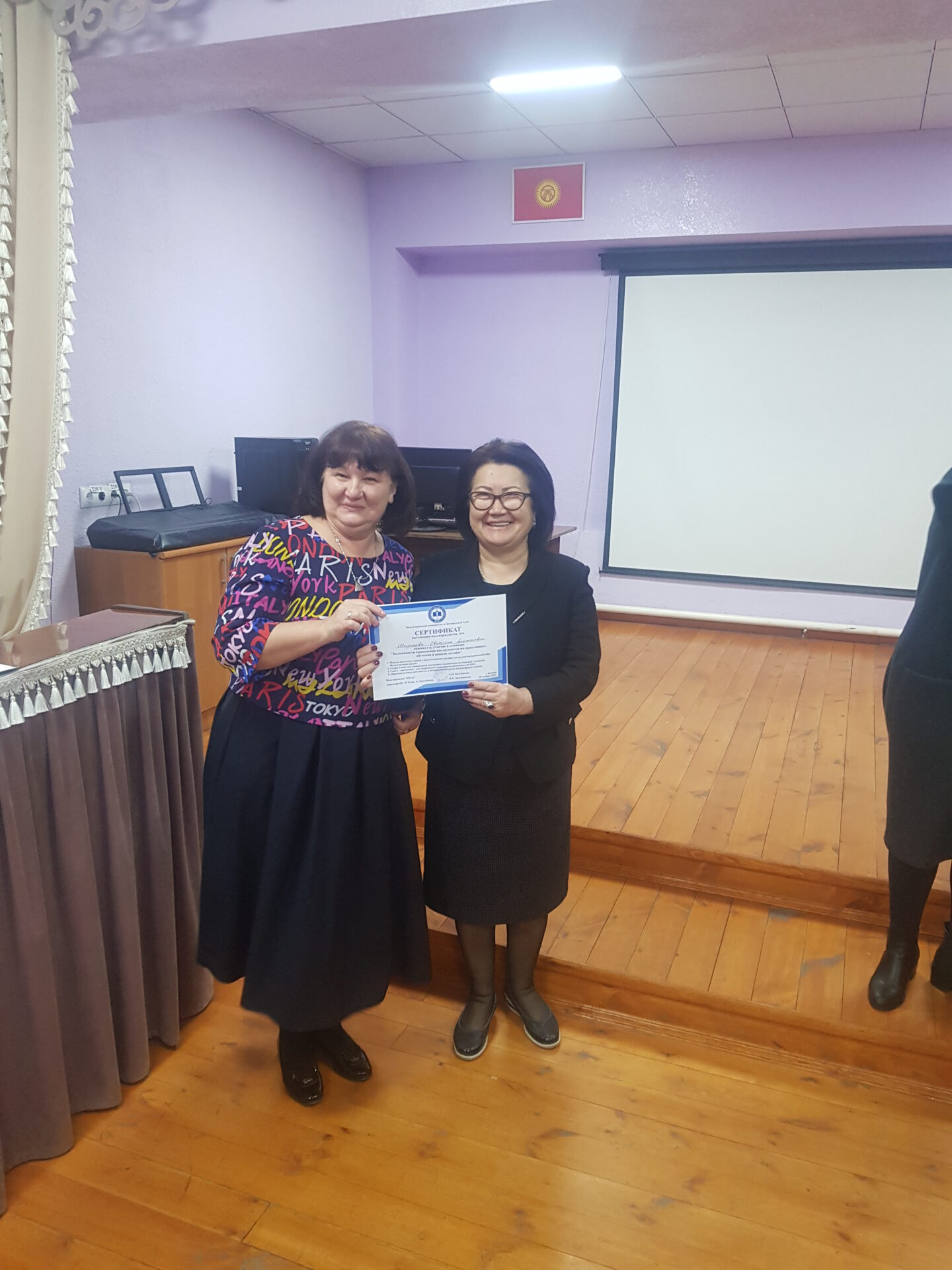 На семинаре состоялся взаимный обмен опытом коллектива школы-гимназии №24 и Международного университета Центральной Азии (МУЦА). Опыт дистанционной работы по ШГ №24 им. А. Токомбаева был подробно освещён завучем по УВР Знаменской Натальей Александровной.