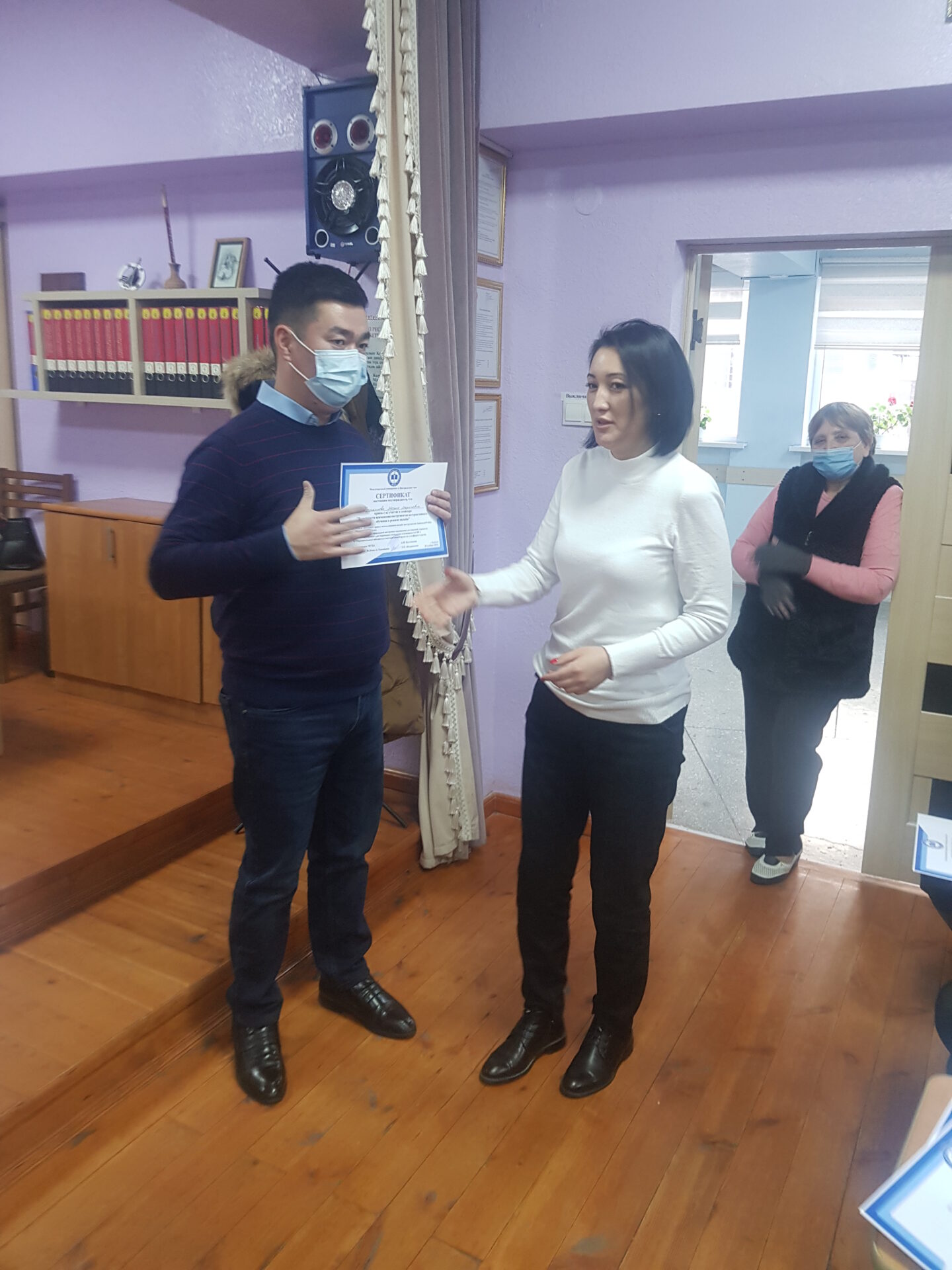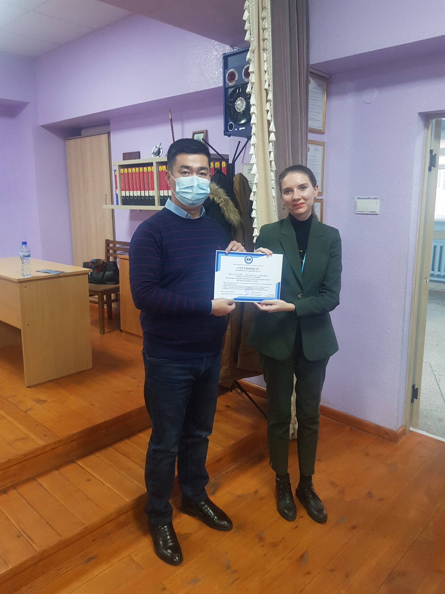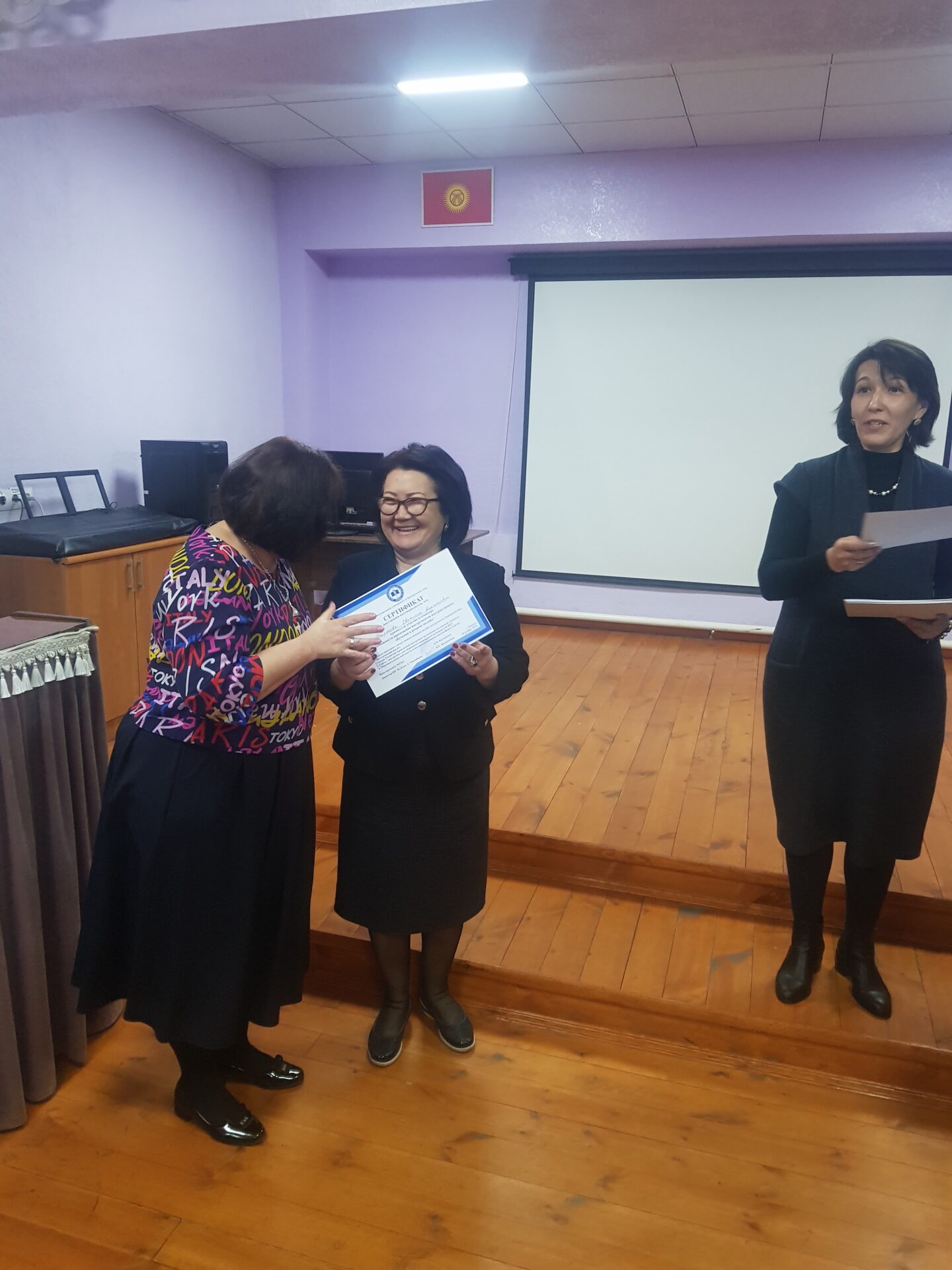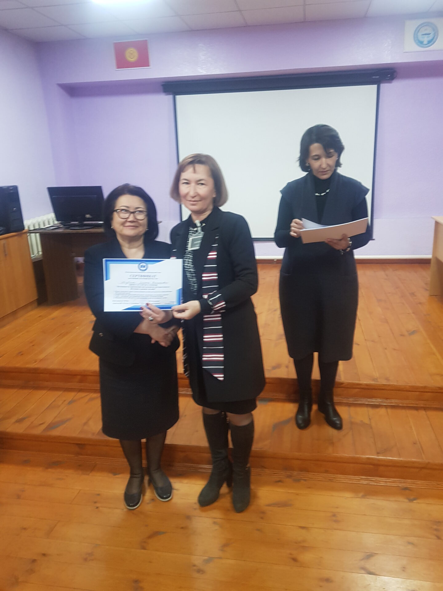 На семинаре состоялся взаимный обмен опытом коллектива школы-гимназии №24 и Международного университета Центральной Азии (МУЦА). Опыт дистанционной работы по ШГ №24 им. А. Токомбаева был подробно освещён завучем по УВР Знаменской Натальей Александровной.
