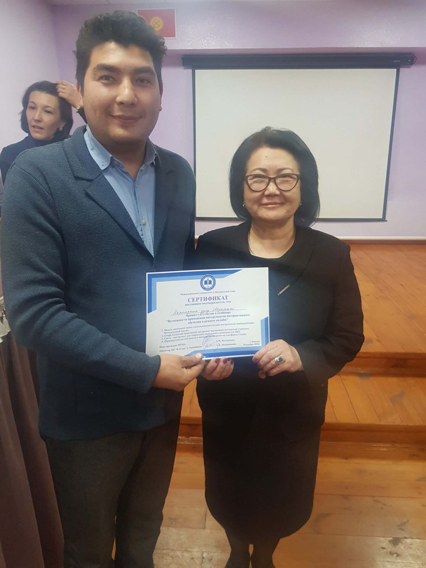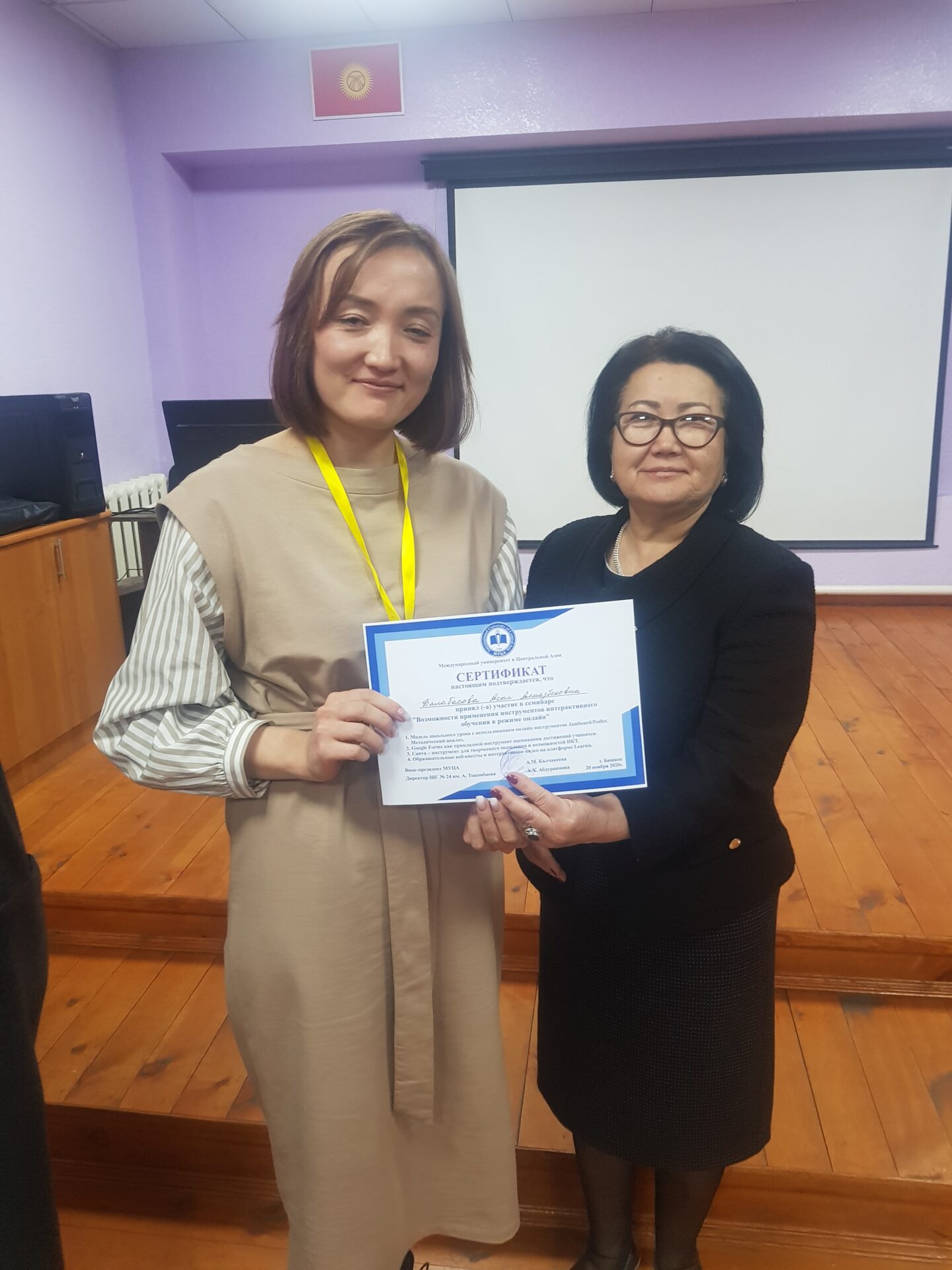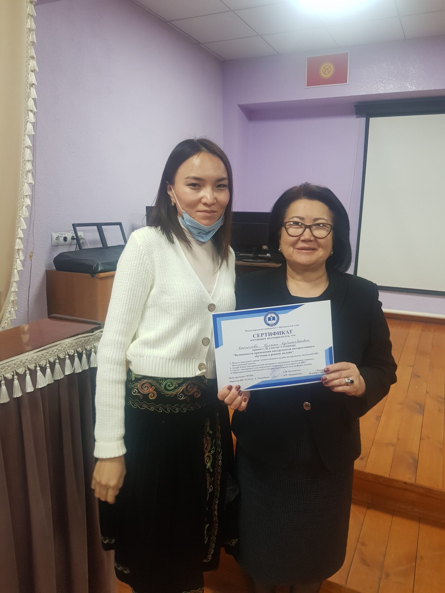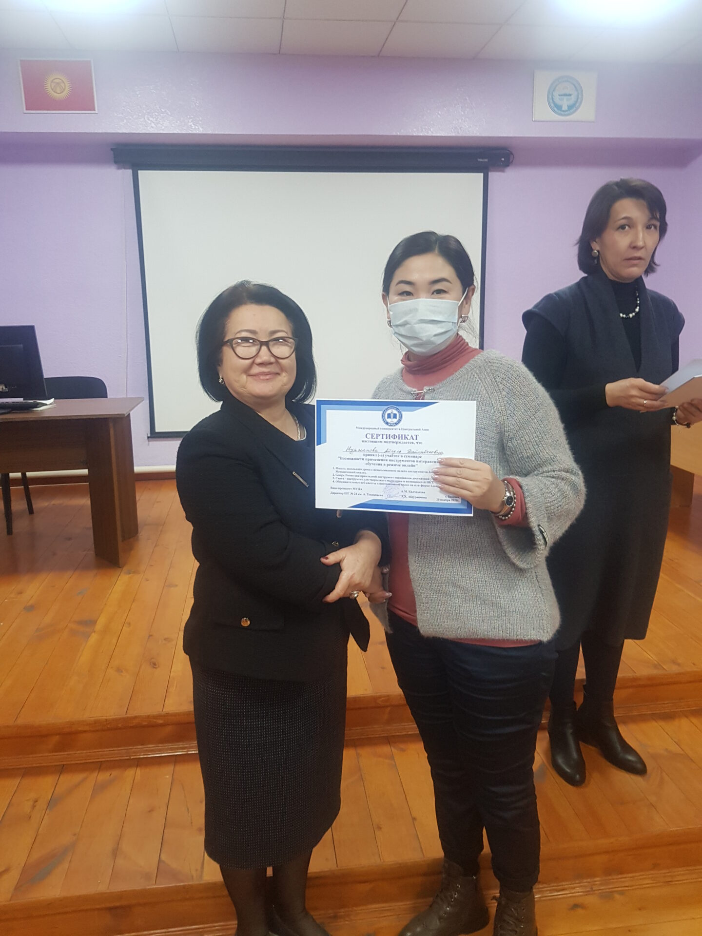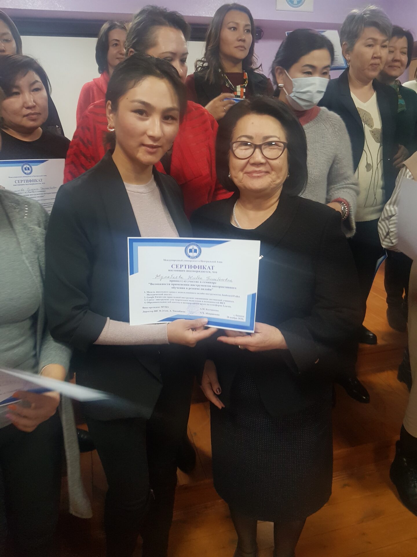 20 ноября 2020 года на базе школы-гимназии №24 имени Аалы Токомбаева состоялся семинар «Возможности применения инструментов интерактивного обучения в режиме онлайн» для учителей общеобразовательных школ города Бишкека.