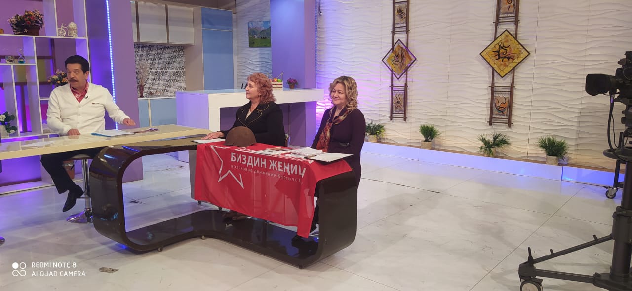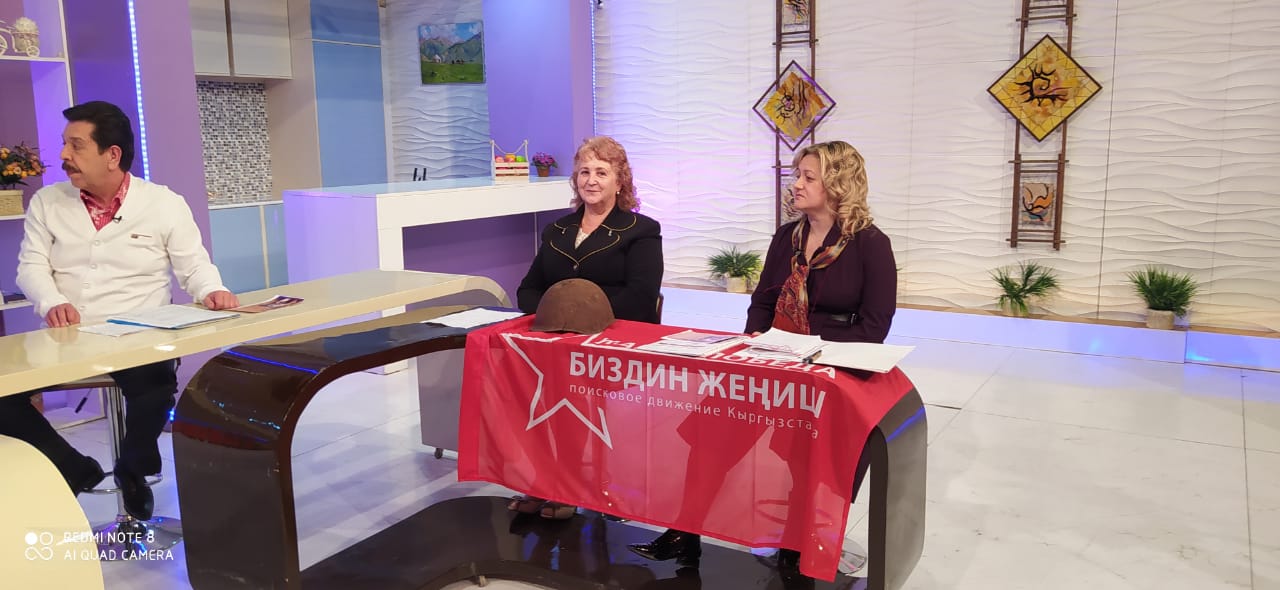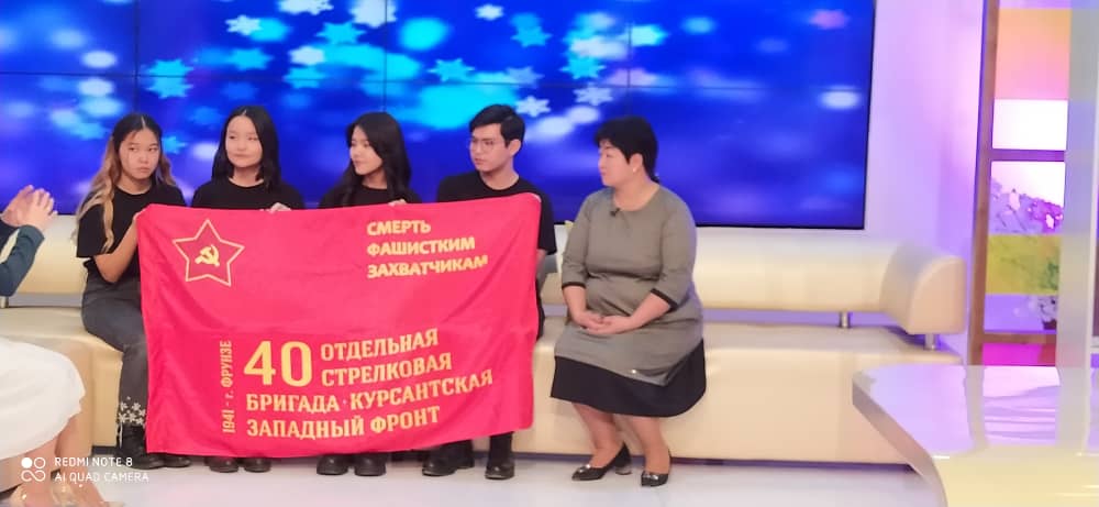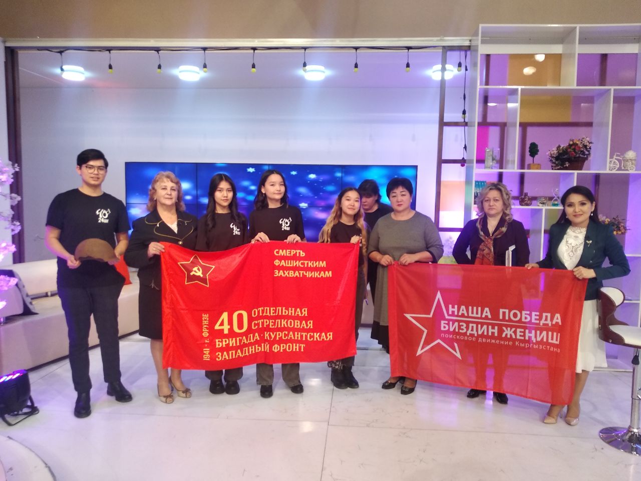 17 марта 2022 года учащиеся 10 в класса с классным руководителем Адыловой М.Ж, зам.директора по ВР Купавцевой Л.Н. и журналисткой Лаптевой С.В., которая является куратором поискового движения в Кыргызстане «Наша Победа» побывали на телевидении, приняли участие в утренней программе «Замана». Рассказали о том, что в школе работает поисковый отряд по 40-й отдельной стрелковой курсантской бригаде, который формировался в стенах нашей школы в октябре, ноябре 1941 года. Также речь шла о мероприятиях, которые проводятся в этом направлении, с кем сотрудничают. Ребята принимали участие в городских мероприятиях таких, как Международная конференция по героям-панфиловцам, митинги, уборка Братского кладбища. Ребята проводят встречи, мероприятия с учащимися школы. Со школой активно сотрудничают родители, телеведущие КТРК Стасова Айдана, Кожогулов Атахан.