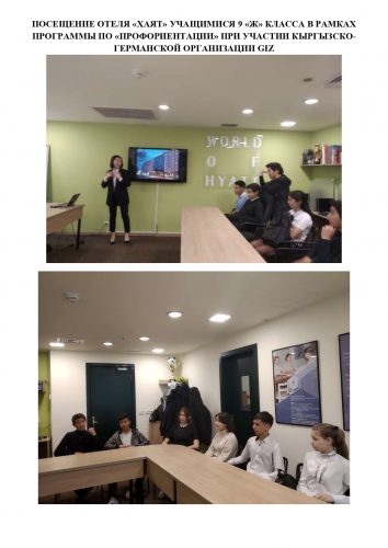 ПОСЕЩЕНИЕ ОТЕЛЯ «ХАЯТ» УЧАЩИМИСЯ 9 «Ж» КЛАССА В РАМКАХ ПРОГРАММЫ ПО «ПРОФОРИЕНТАЦИИ» ПРИ УЧАСТИИ КЫРГЫЗСКО-ГЕРМАНСКОЙ ОРГАНИЗАЦИИ GIZ