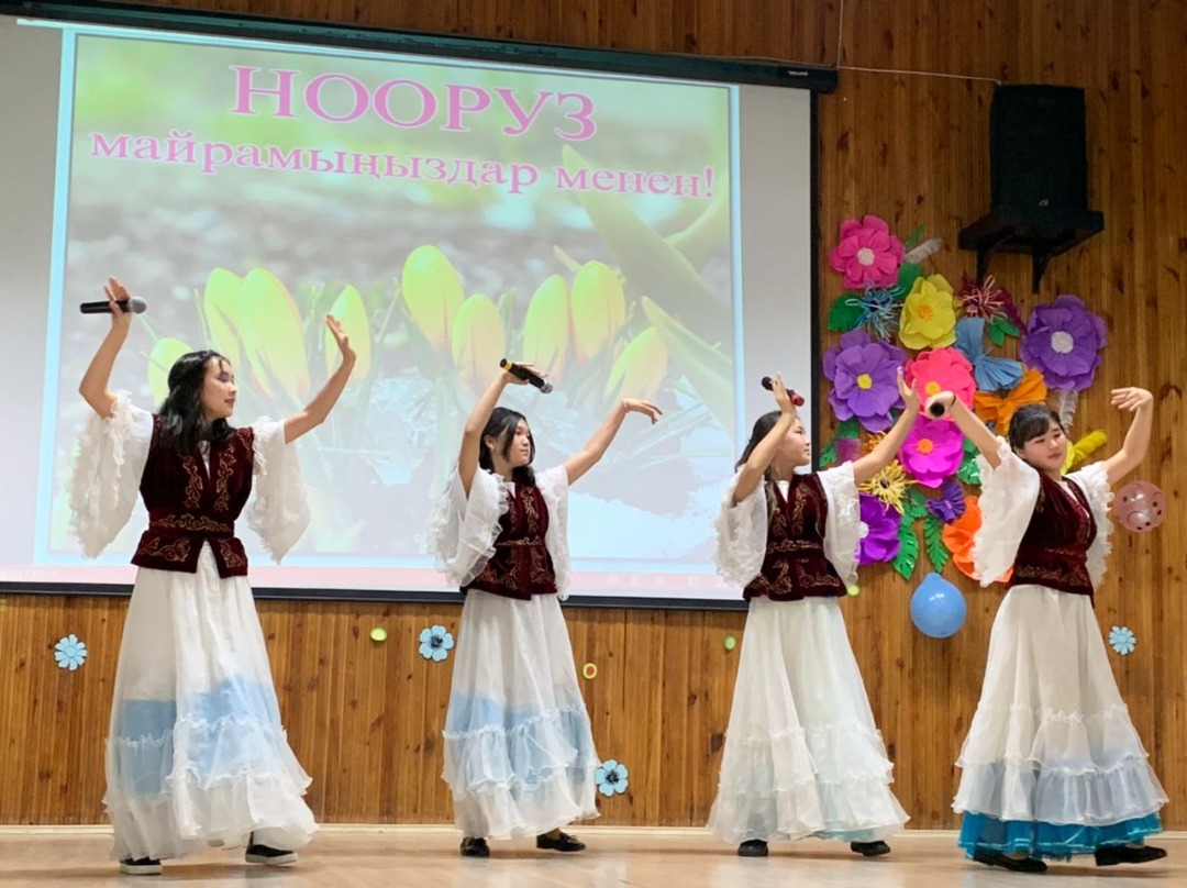 В преддверии праздника Нооруз 18 марта 2022 года учителя кафедры кыргызского языка совместно с учащимися школы-гимназии №24 провели торжественный концерт, посвященный к празднованию дня равноденствия и начало нового года.