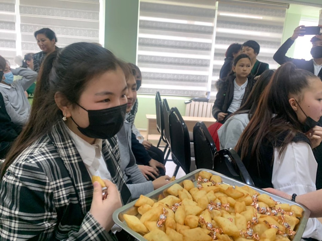 Участники концерта танцевали национальные танцы, пели кыргызские песни, играли на комузе и в конце мероприятия угостили гостей вкусными борсоками и праздничным блюдом сүмөлөк.