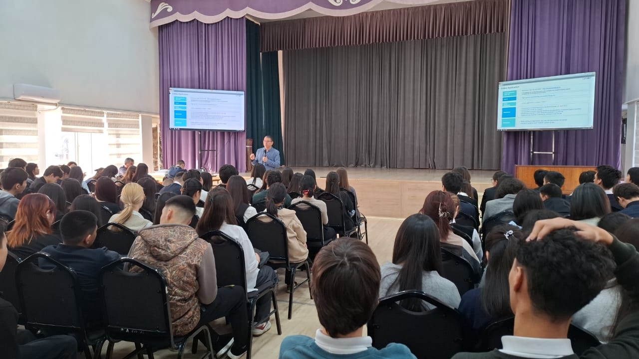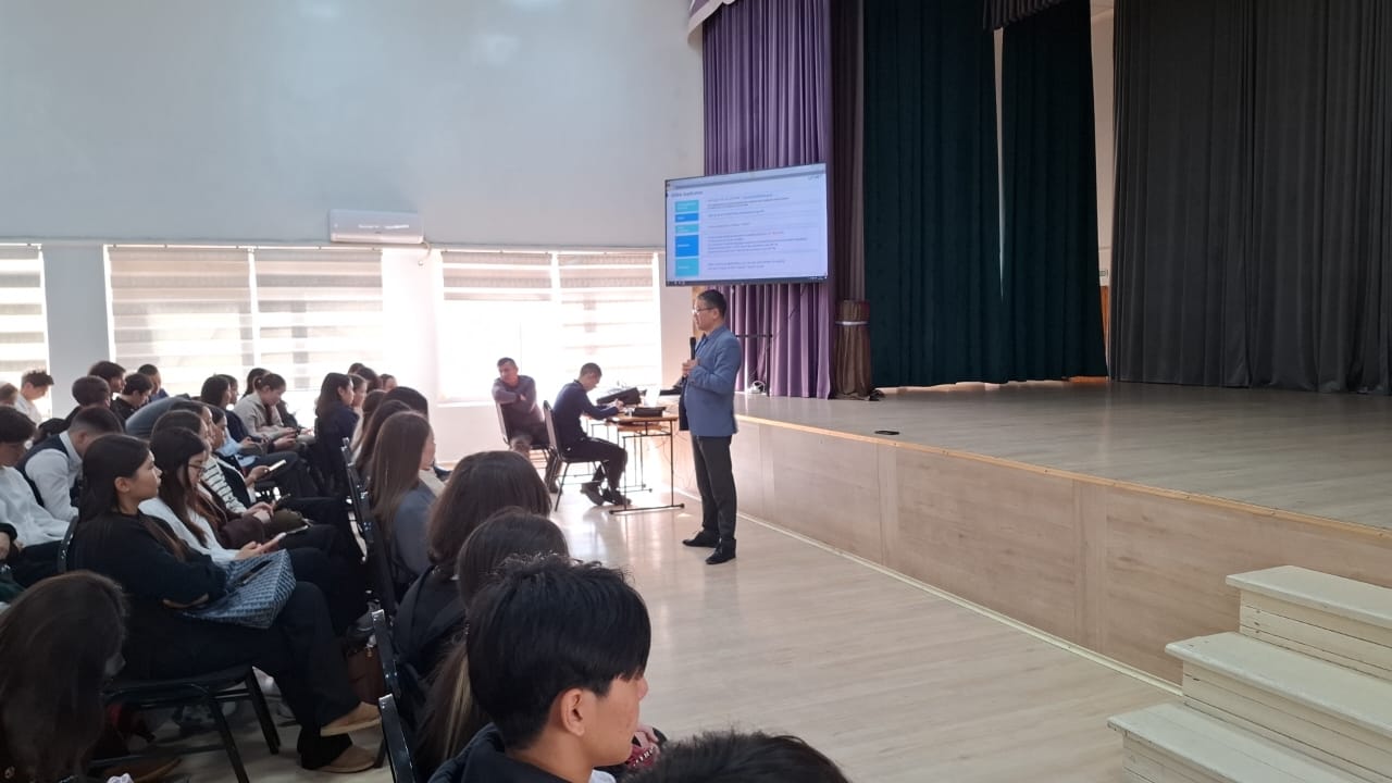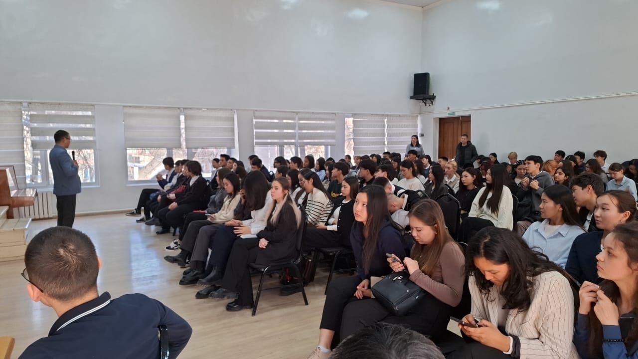 27 января в актовом зале состоялась встреча с директором компании «Логос» и основателем проекта Школа будущих лидеров Алтынбеком Бегалиевым. На встречи учащиеся 11 классов получили информацию о возможности обучения за рубежом на грантовых местах. Данная встреча была организованна по инициативе Департамента образования города Бишкек. Задача состоит в том, чтобы дать перспективному, целеустремленному и талантливому поколению возможность раскрыть свой потенциал и поступить в ТОПовые ВУЗы мира с полной финансовой поддержкой.