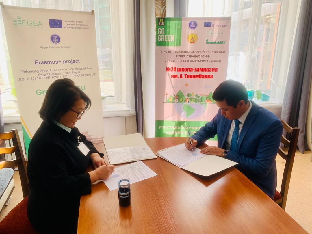 Был подписан меморандум о сотрудничестве между КЭУ имени М.Рыскулбекова и школой гимназией №24. В результате наша гимназия и учителя стали участниками эко-проекта по «Green Economy».
