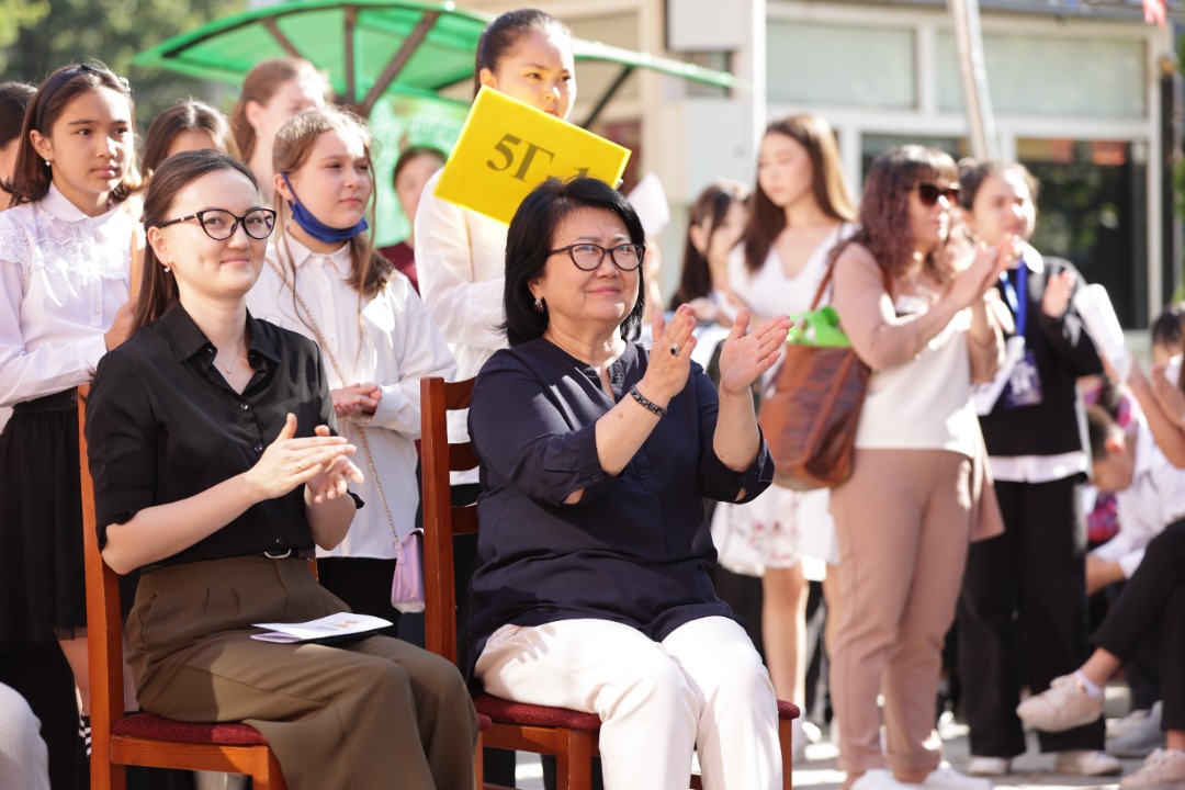 На открытии фестиваля приняли участие Рысбаева А.Ж. – заместитель акима Первомайского района по социальным вопросам, Лосникова Н.А. – начальник ГУО при мэрии г.Бишкек, Мусаева Р.И. – директор ПРЦО г.Бишкек. Директор нашей школы Абдураимова А.Х. провела экскурсию для гостей по всем предметным образовательным площадкам которые работали в течении двух дней фестиваля.